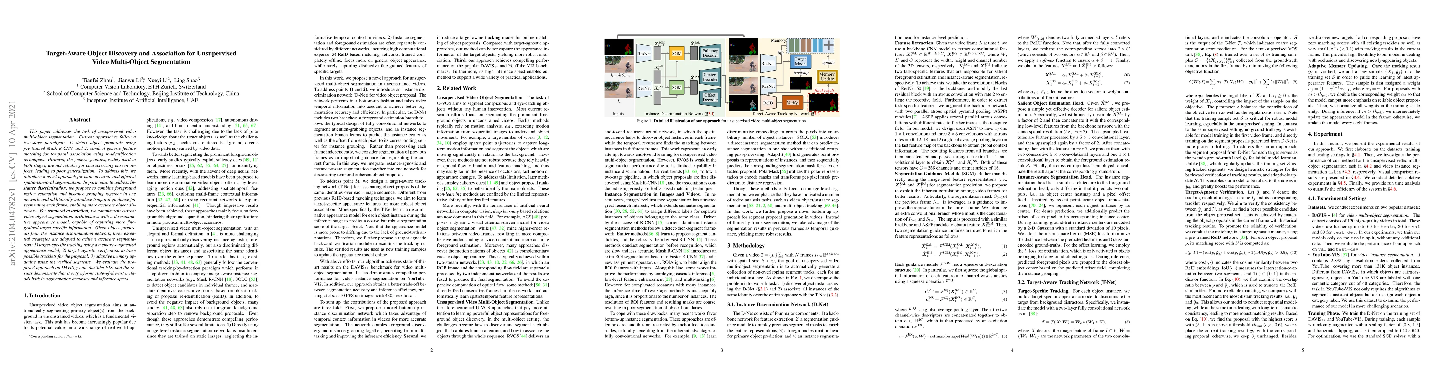This paper addresses the task of unsupervised video multi-object segmentation. Current approaches follow a two-stage paradigm: 1) detect object proposals using pre-trained Mask R-CNN, and 2) conduct generic feature matching for temporal association using re-identification techniques. However, the generic features, widely used in both stages, are not reliable for characterizing unseen objects, leading to poor generalization. To address this, we introduce a novel approach for more accurate and efficient spatio-temporal segmentation. In particular, to address \textbf{instance discrimination}, we propose to combine foreground region estimation and instance grouping together in one network, and additionally introduce temporal guidance for segmenting each frame, enabling more accurate object discovery. For \textbf{temporal association}, we complement current video object segmentation architectures with a discriminative appearance model, capable of capturing more fine-grained target-specific information. Given object proposals from the instance discrimination network, three essential strategies are adopted to achieve accurate segmentation: 1) target-specific tracking using a memory-augmented appearance model; 2) target-agnostic verification to trace possible tracklets for the proposal; 3) adaptive memory updating using the verified segments. We evaluate the proposed approach on DAVIS$_{17}$ and YouTube-VIS, and the results demonstrate that it outperforms state-of-the-art methods both in segmentation accuracy and inference speed.