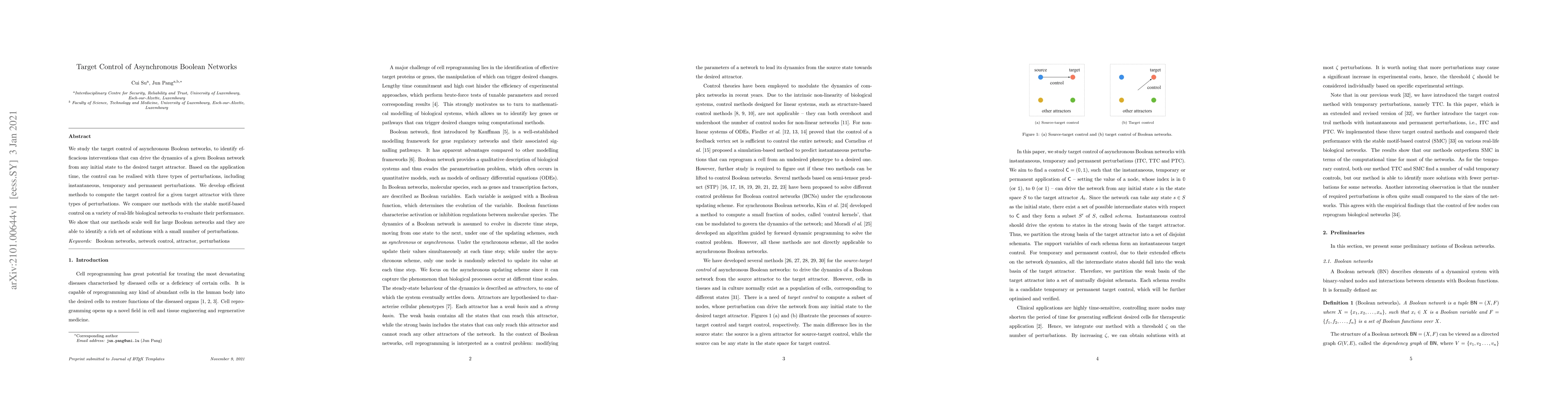 This paper develops efficient methods for controlling the dynamics of asynchronous Boolean networks to drive them to a desired target attractor using three types of perturbations: instantaneous, temporary, and permanent. The proposed methods outperform stable motif-based control, scaling well for large networks and identifying a diverse set of solutions with minimal perturbations.