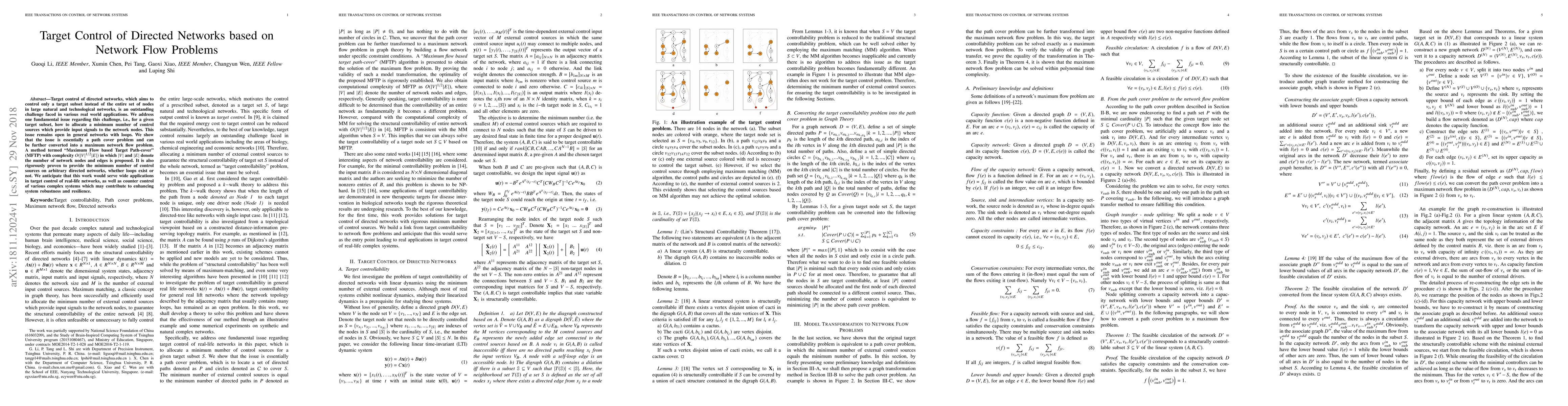 Researchers developed an efficient method to control targeted subsets of nodes in large networks, known as Maximum Flow based Target Path-cover (MFTP), which provides the minimum number of control sources and can handle loops with complexity $O(|V|^{1/2}|E|)$. This breakthrough has significant implications for enhancing system robustness and resilience in various real-world applications.