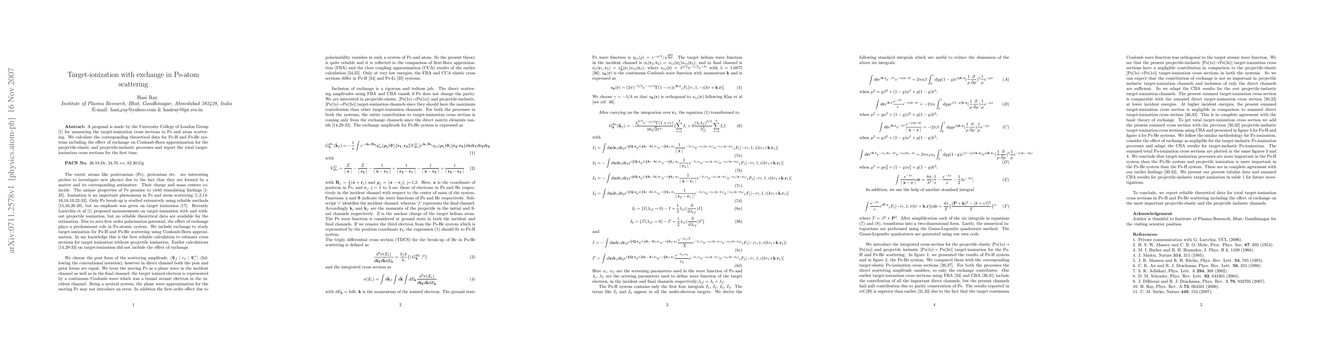 This paper proposes a method to measure target-ionization cross sections in positron (Ps) atom scattering, with theoretical calculations for Ps-H and Ps-He systems. It reports the total target-ionization cross sections, including the effect of exchange on Coulomb-Born approximation for elastic and inelastic processes.