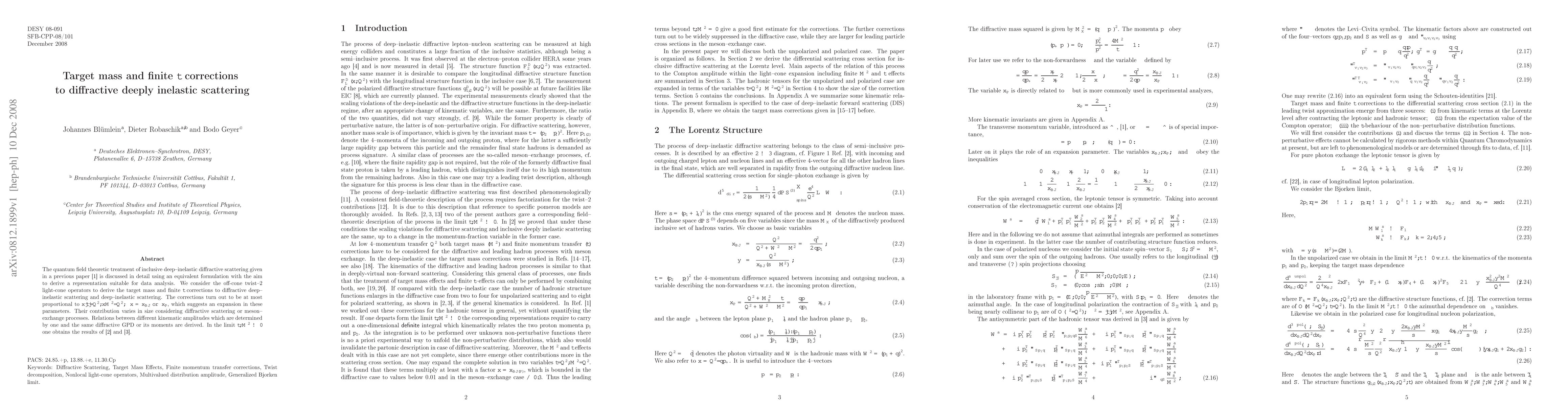 This paper refines the quantum field theory treatment of diffractive deep-inelastic scattering, deriving target mass and finite $t$ corrections using twist-2 light-cone operators. The corrections are proportional to $x |t|/Q^2$ and $x M^2/Q^2$, suggesting an expansion in these parameters, with varying contributions in diffractive versus meson-exchange processes.