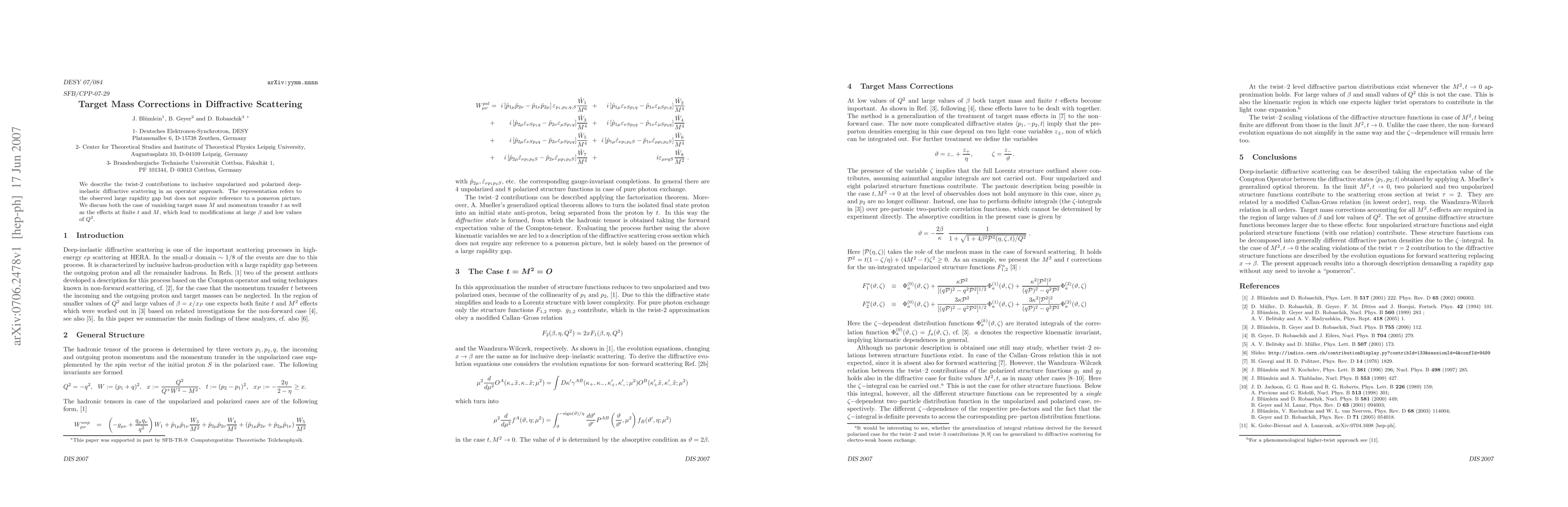 This paper investigates twist-2 contributions in deep-inelastic diffractive scattering, focusing on target mass corrections without invoking a pomeron picture. It examines both vanishing and finite target mass and momentum transfer scenarios, highlighting modifications at large β and low Q² values.