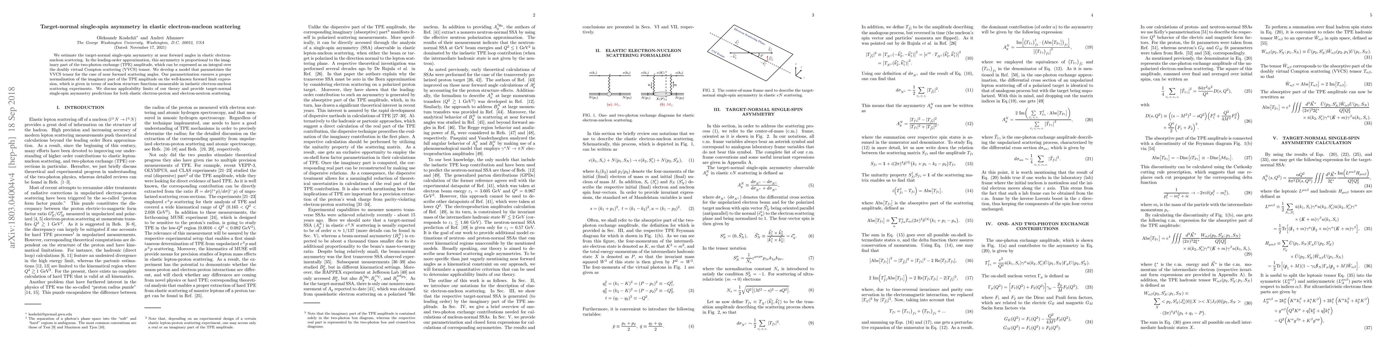 This paper estimates the target-normal single-spin asymmetry in elastic electron-nucleon scattering, attributing it to the imaginary part of the two-photon exchange amplitude. The authors develop a model to parametrize the doubly virtual Compton scattering tensor, ensuring proper normalization and providing predictions for both electron-proton and electron-neutron scattering.