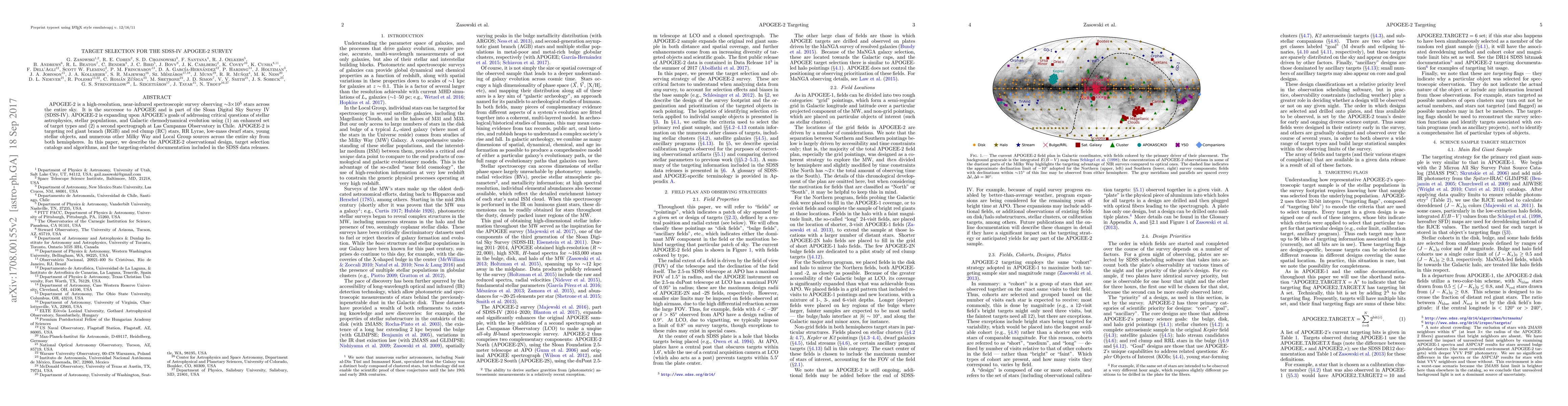 This paper outlines the observational design and target selection strategies for the APOGEE-2 survey, which aims to observe approximately 300,000 stars across the sky using a high-resolution near-infrared spectrograph. The survey targets diverse stellar populations including red giants and young stellar objects to study Galactic chemodynamics and stellar astrophysics.