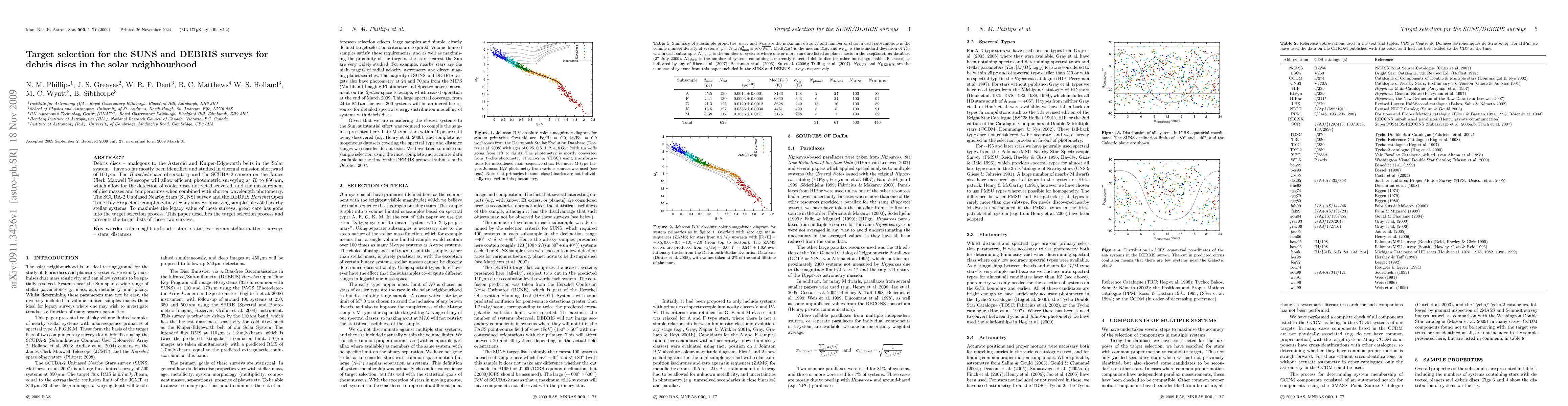 Debris discs - analogous to the Asteroid and Kuiper-Edgeworth belts in the Solar system - have so far mostly been identified and studied in thermal emission shortward of 100 um. The Herschel space observatory and the SCUBA-2 camera on the James Clerk Maxwell Telescope will allow efficient photometric surveying at 70 to 850 um, which allow for the detection of cooler discs not yet discovered, and the measurement of disc masses and temperatures when combined with shorter wavelength photometry. The SCUBA-2 Unbiased Nearby Stars (SUNS) survey and the DEBRIS Herschel Open Time Key Project are complimentary legacy surveys observing samples of ~500 nearby stellar systems. To maximise the legacy value of these surveys, great care has gone into the target selection process. This paper describes the target selection process and presents the target lists of these two surveys.