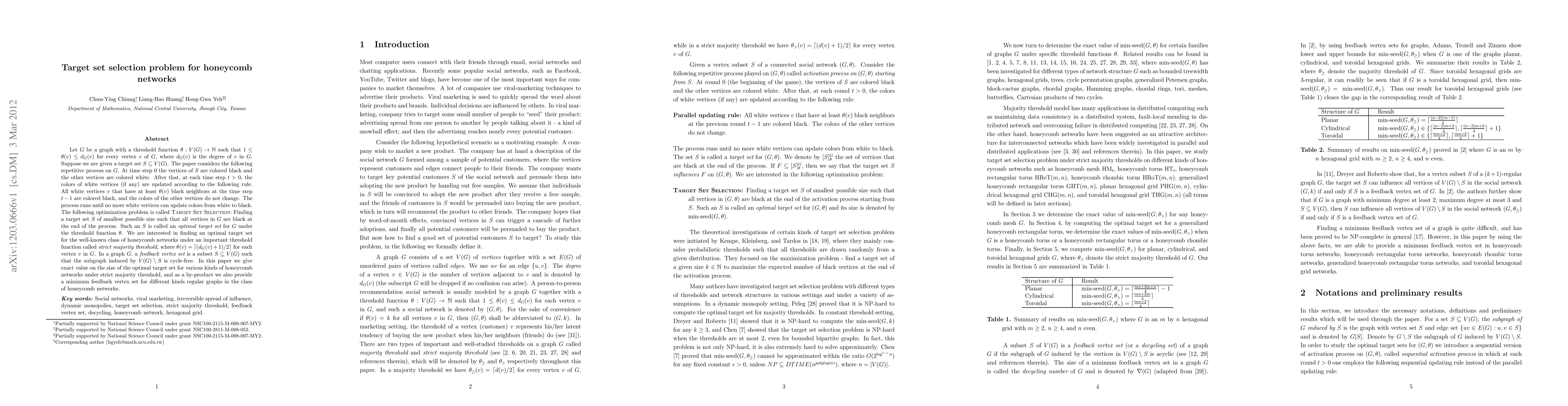 The research paper solves a target set selection problem for honeycomb networks with a strict majority threshold function, finding an optimal target set of smallest size that turns all vertices black.
