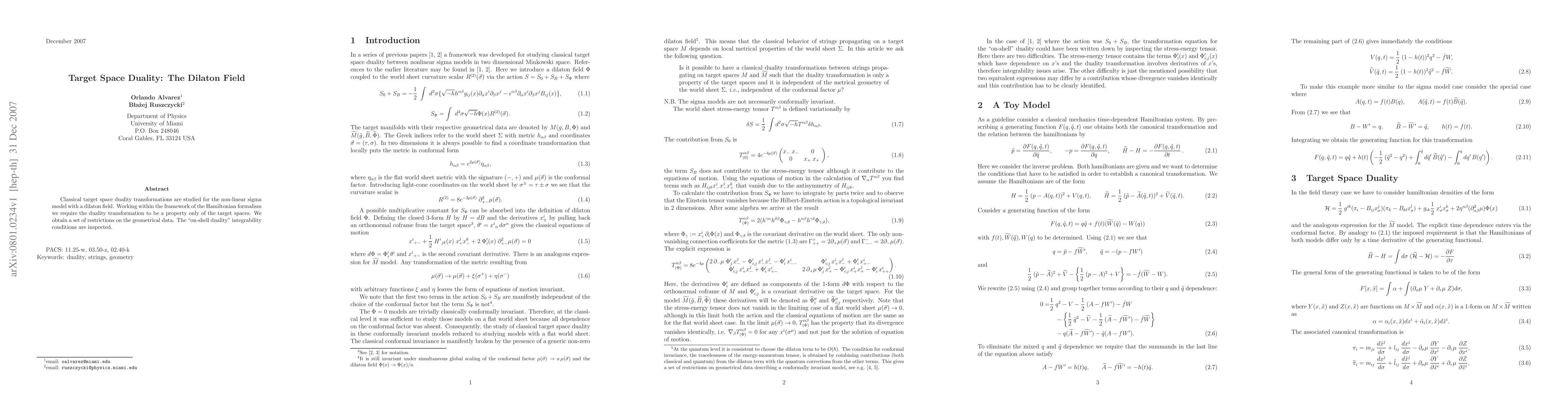 This paper investigates classical target space duality in the context of a non-linear sigma model featuring a dilaton field, focusing on the Hamiltonian formalism. It identifies specific restrictions on geometrical data for the duality transformation to hold solely within target spaces.