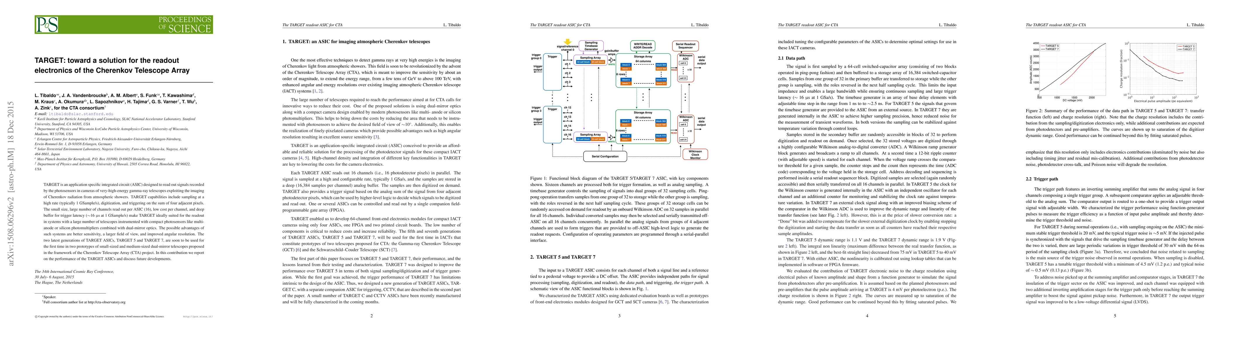 TARGET is an ASIC designed for high-rate readout of signals from gamma-ray telescopes using Cherenkov radiation imaging. The latest TARGET versions aim to enhance sensitivity, field of view, and angular resolution in the Cherenkov Telescope Array project.