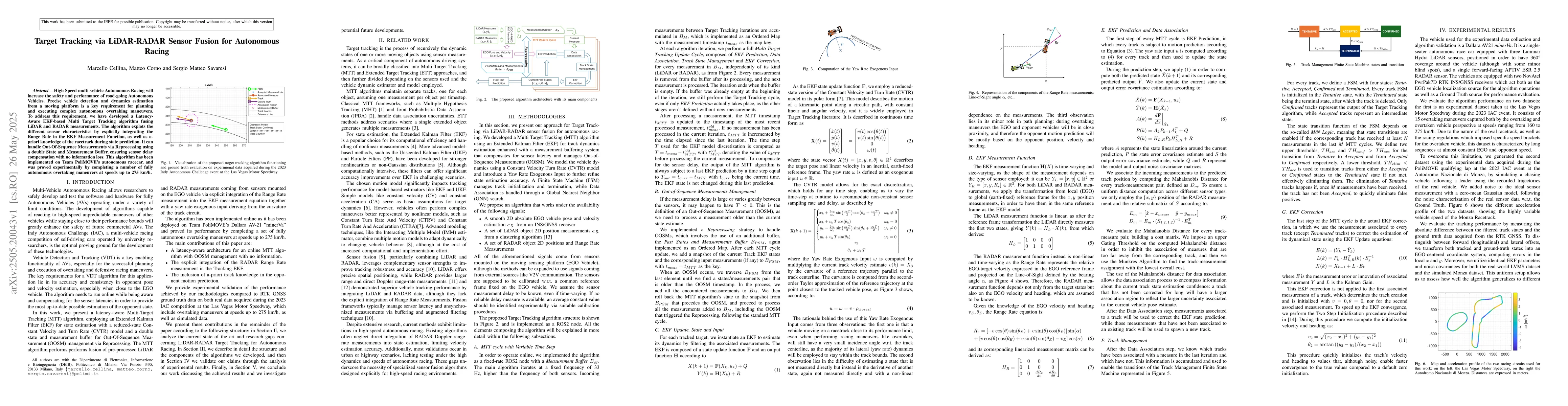 Researchers developed a latency-aware algorithm that combines LiDAR and RADAR data to track multiple targets in high-speed autonomous racing, achieving speeds of up to 275 km/h with fully autonomous overtaking maneuvers.