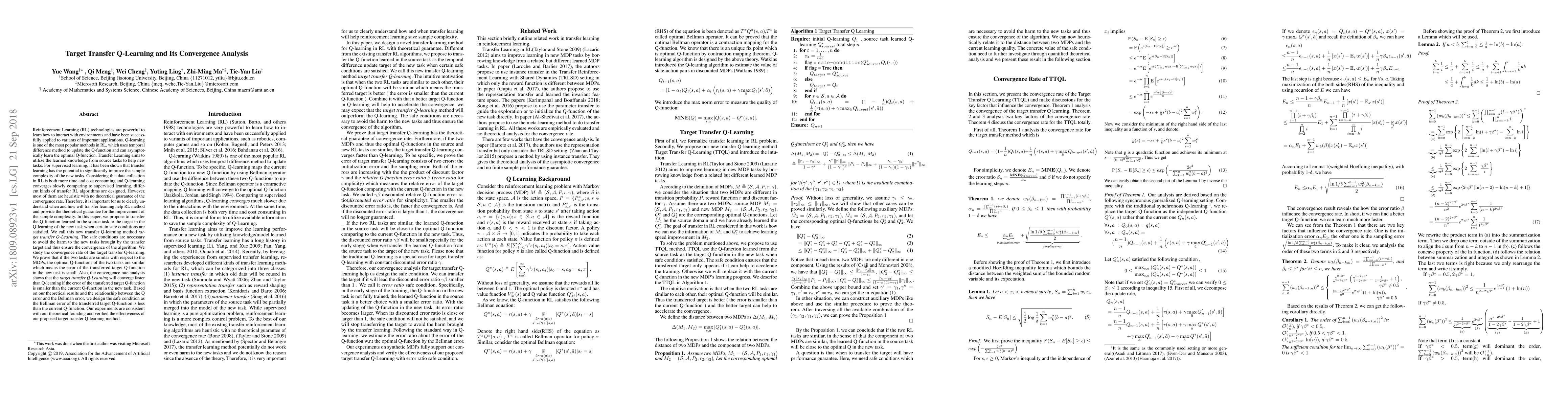 This paper proposes a new transfer Q-learning method called target transfer Q-learning, which transfers the Q-function from a source task to a new task under safe conditions to improve sample complexity. The authors provide theoretical guarantees for the convergence rate, showing that it converges faster than standard Q-learning when the transferred Q-function error is sufficiently small.