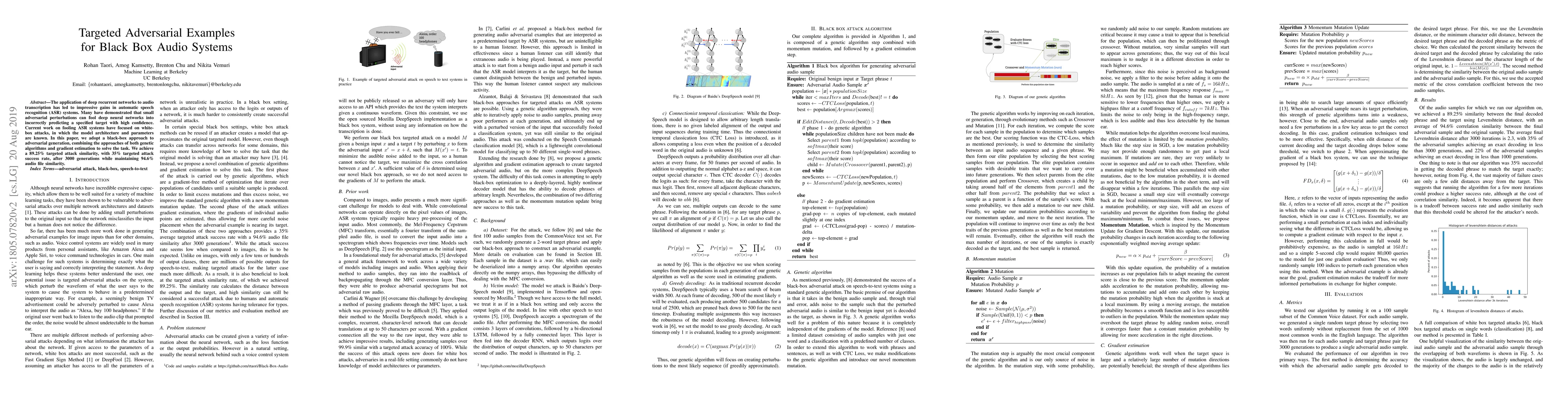 This paper explores black-box adversarial attacks on deep recurrent networks used for automatic speech recognition, employing genetic algorithms and gradient estimation. It achieves a 89.25% targeted attack success rate with 94.6% similarity to the original audio files.