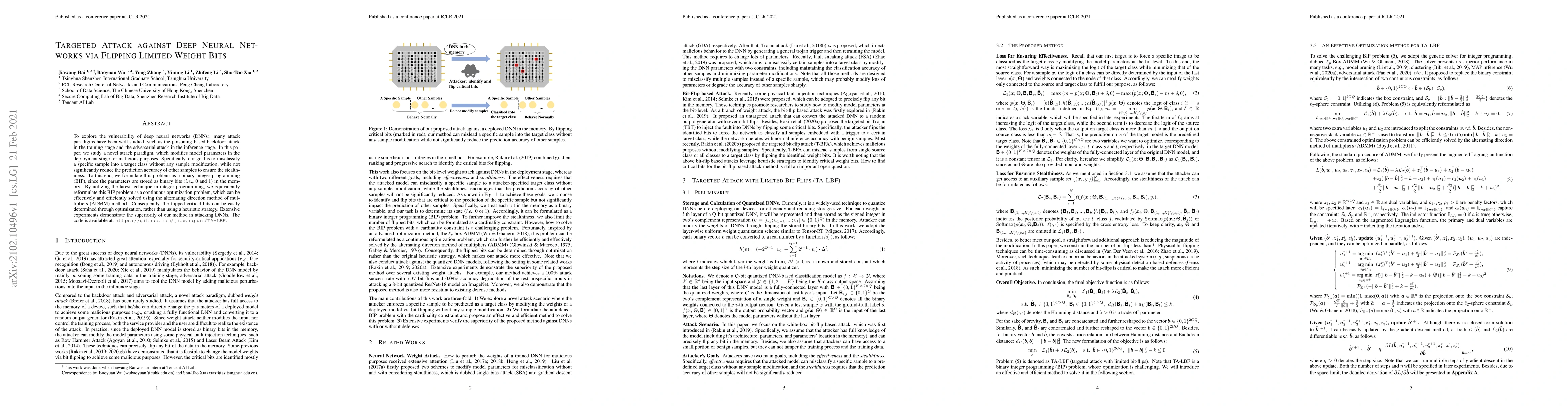 Researchers discovered a new way to attack deep neural networks by flipping limited weight bits without modifying samples, using binary integer programming and optimization methods. This method allows for stealthy attacks with high accuracy.