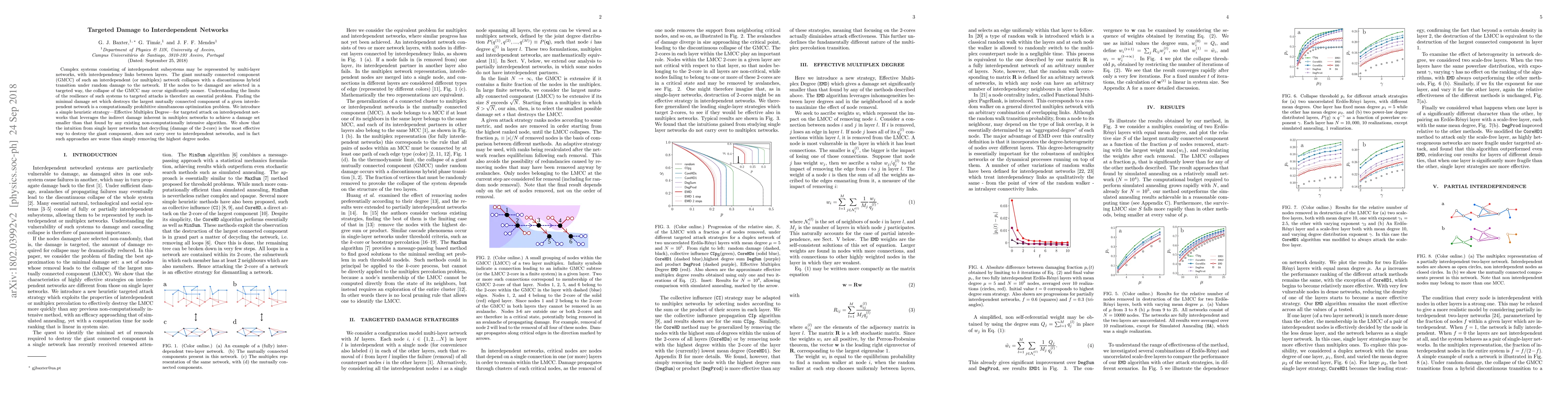 This paper explores the collapse of the giant mutually connected component in interdependent networks under targeted damage. It introduces a heuristic strategy called Effective Multiplex Degree for efficient targeted attacks, demonstrating that removing high-degree nodes is more effective than decycling, contrary to single-layer network intuitions.