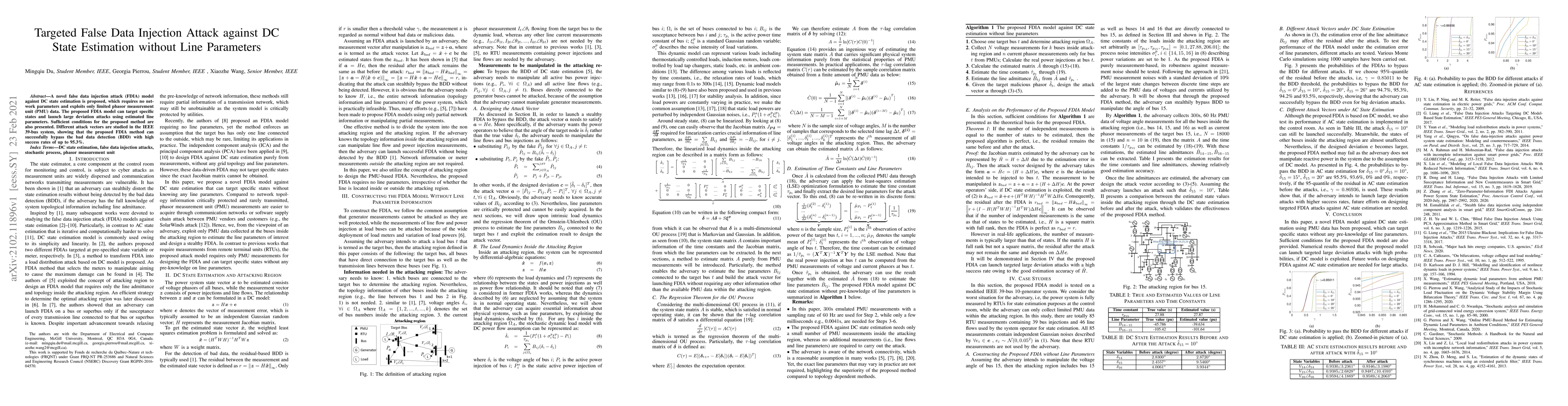 Summary: This paper introduces a novel false data injection attack against DC state estimation that does not require network parameters, leveraging limited PMU data to target specific states and achieve large deviations. The method successfully evades bad data detection with up to 95.3% success in the IEEE 39-bus system.