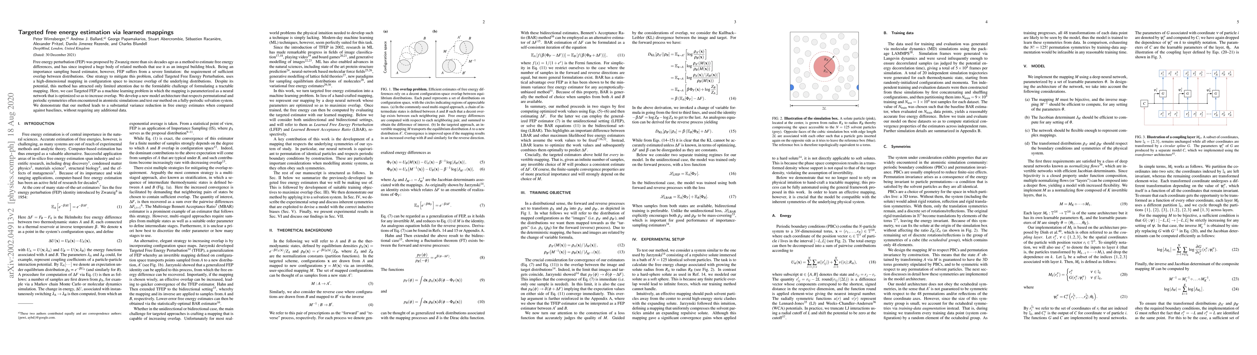This paper proposes a machine learning approach to enhance Targeted Free Energy Perturbation (Targeted FEP) by using a neural network to learn a high-dimensional mapping that increases overlap between distributions, thereby reducing the variance in free energy estimates in atomistic simulations. The developed model architecture respects symmetries and shows significant improvement over baseline methods.