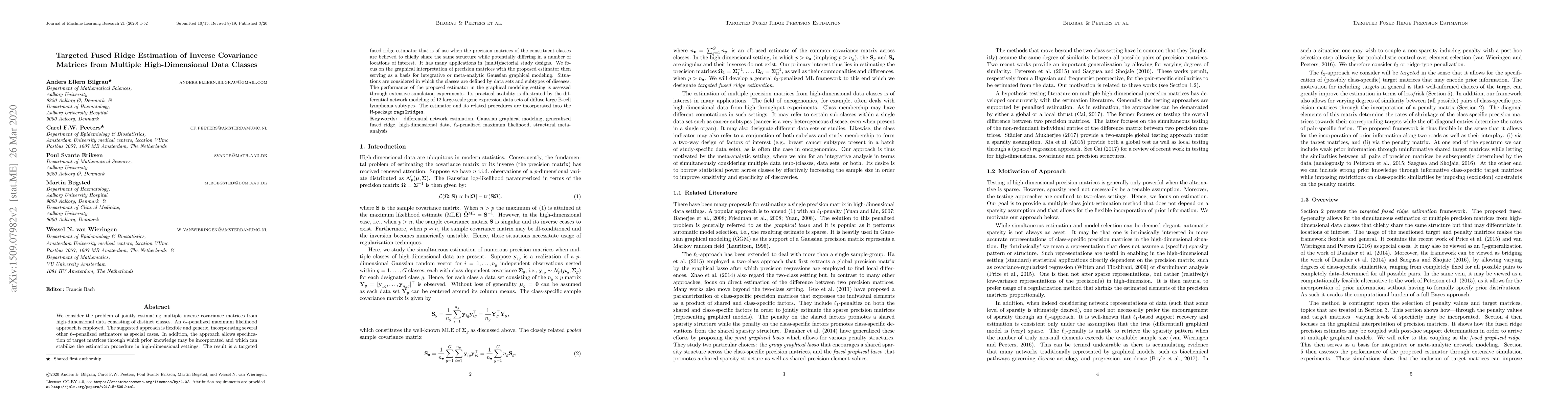 This paper proposes an $\ell_2$-penalized maximum likelihood approach for jointly estimating inverse covariance matrices from multiple high-dimensional data classes, incorporating prior knowledge through target matrices. The targeted fused ridge estimator is shown to effectively share common structure while allowing for differences, and is demonstrated through simulations and gene expression data analysis.