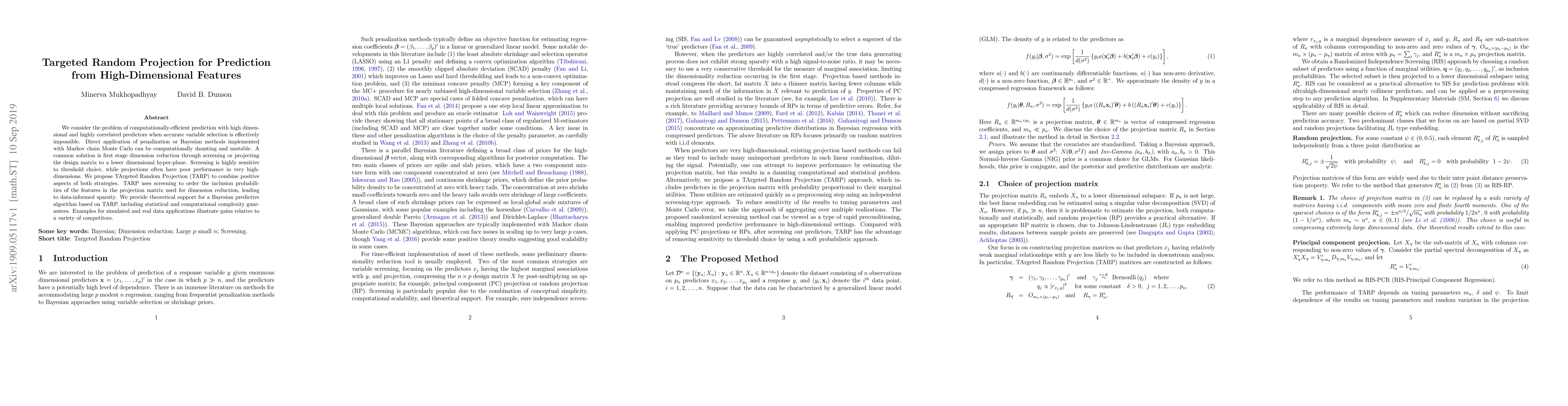 The paper proposes Targeted Random Projection (TARP) for efficient prediction from high-dimensional, correlated predictors. TARP combines screening and projection to achieve data-informed sparsity, offering theoretical support and computational efficiency over traditional methods.