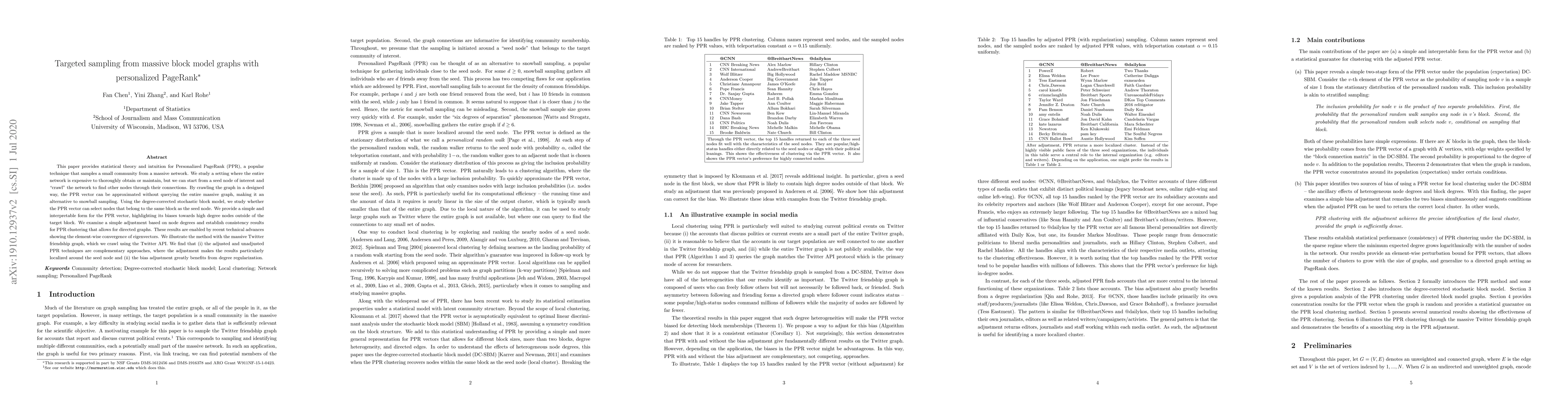This paper introduces a method to target sampling from massive network graphs using personalized PageRank, allowing for efficient exploration of a network starting from a seed node and potentially identifying nodes in the same block as the seed.
