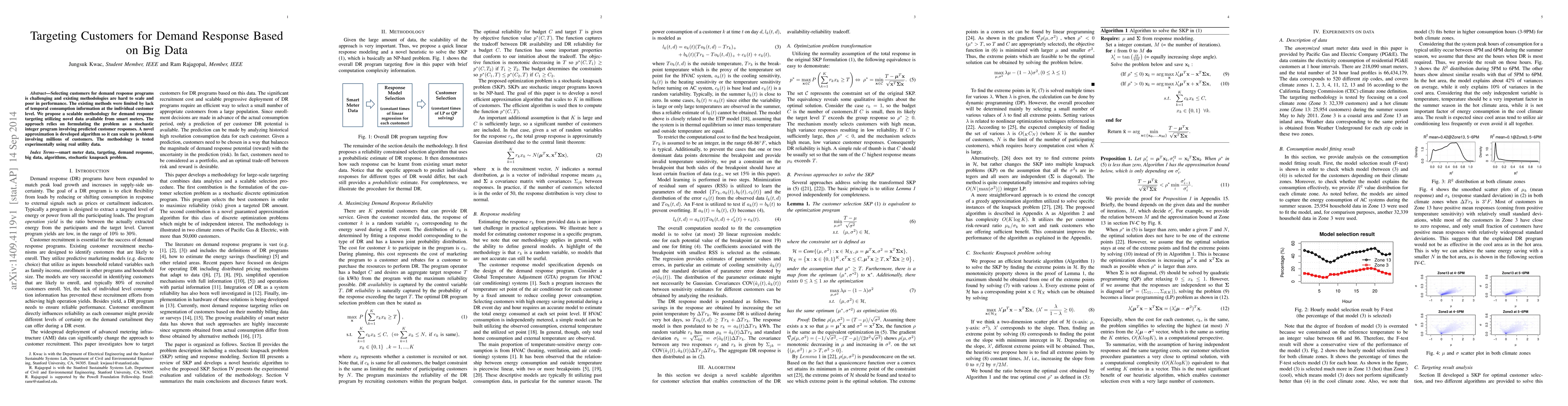 This paper proposes a scalable methodology for targeting customers in demand response programs using smart meter data, addressing the limitations of existing methods by formulating a stochastic integer program and developing an efficient approximation algorithm. Experimental results using real utility data demonstrate the effectiveness of the approach.