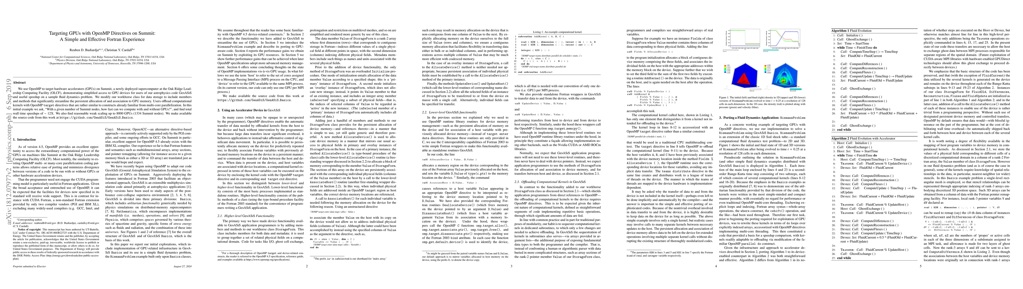 This paper demonstrates the use of OpenMP directives to efficiently target GPUs on Summit supercomputer, achieving significant speedups for a fluid dynamics problem. The authors modified their astrophysics code GenASiS for GPU acceleration, achieving a total wall time speedup of approximately 12X and reasonable weak scaling up to 8000 GPUs.