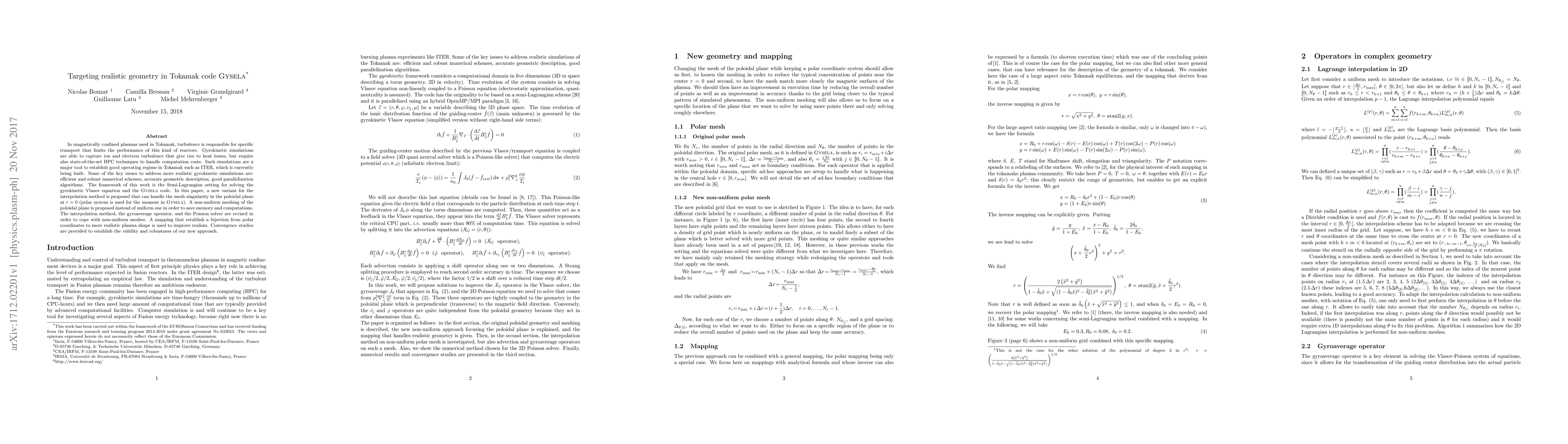 In magnetically confined plasmas used in Tokamak, turbulence is responsible for specific transport that limits the performance of this kind of reactors. Gyrokinetic simulations are able to capture ion and electron turbulence that give rise to heat losses, but require also state-of-the-art HPC techniques to handle computation costs. Such simulations are a major tool to establish good operating regime in Tokamak such as ITER, which is currently being built. Some of the key issues to address more realistic gyrokinetic simulations are: efficient and robust numerical schemes, accurate geometric description, good parallelization algorithms. The framework of this work is the Semi-Lagrangian setting for solving the gyrokinetic Vlasov equation and the Gyseka code. In this paper, a new variant for the interpolation method is proposed that can handle the mesh singularity in the poloidal plane at r=0 (polar system is used for the moment in Gysela). A non-uniform meshing of the poloidal plane is proposed instead of uniform one in order to save memory and computations. The interpolation method, the gyroaverage operator, and the Poisson solver are revised in order to cope with non-uniform meshes. A mapping that establish a bijection from polar coordinates to more realistic plasma shape is used to improve realism. Convergence studies are provided to establish the validity and robustness of our new approach.