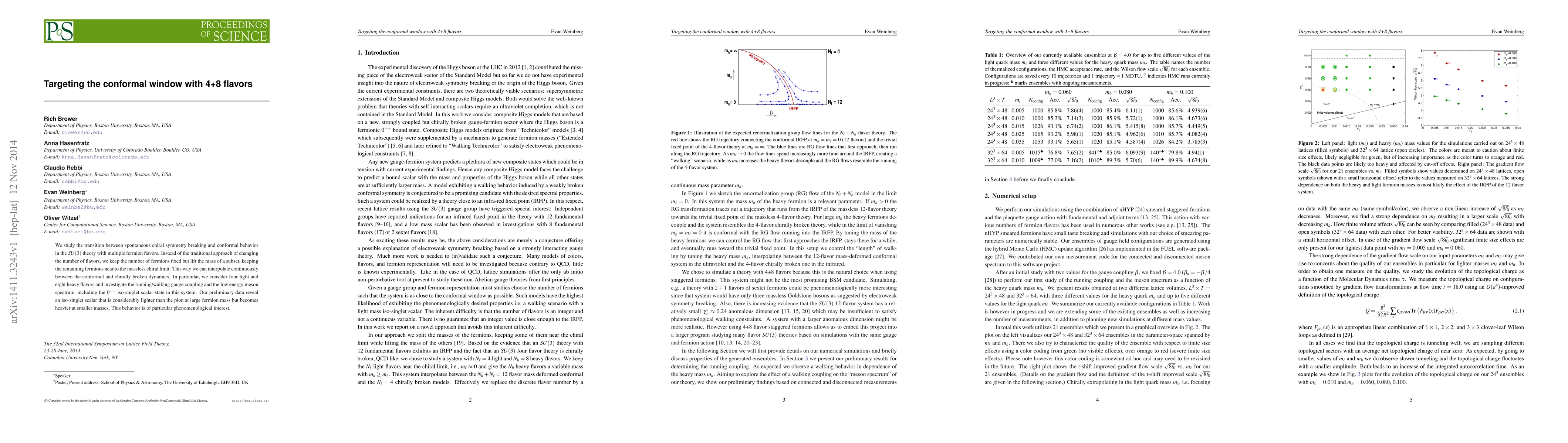 We study the transition between spontaneous chiral symmetry breaking and conformal behavior in the SU(3) theory with multiple fermion flavors. Instead of the traditional approach of changing the number of flavors, we keep the number of fermions fixed but lift the mass of a subset, keeping the remaining fermions near to the massless chiral limit. This way we can interpolate continuously between the conformal and chirally broken dynamics. In particular, we consider four light and eight heavy flavors and investigate the running/walking gauge coupling and the low energy meson spectrum, including the 0++ iso-singlet scalar state in this system. Our preliminary data reveal an iso-singlet scalar that is considerably lighter than the pion at large fermion mass but becomes heavier at smaller masses. This behavior is of particular phenomenological interest.