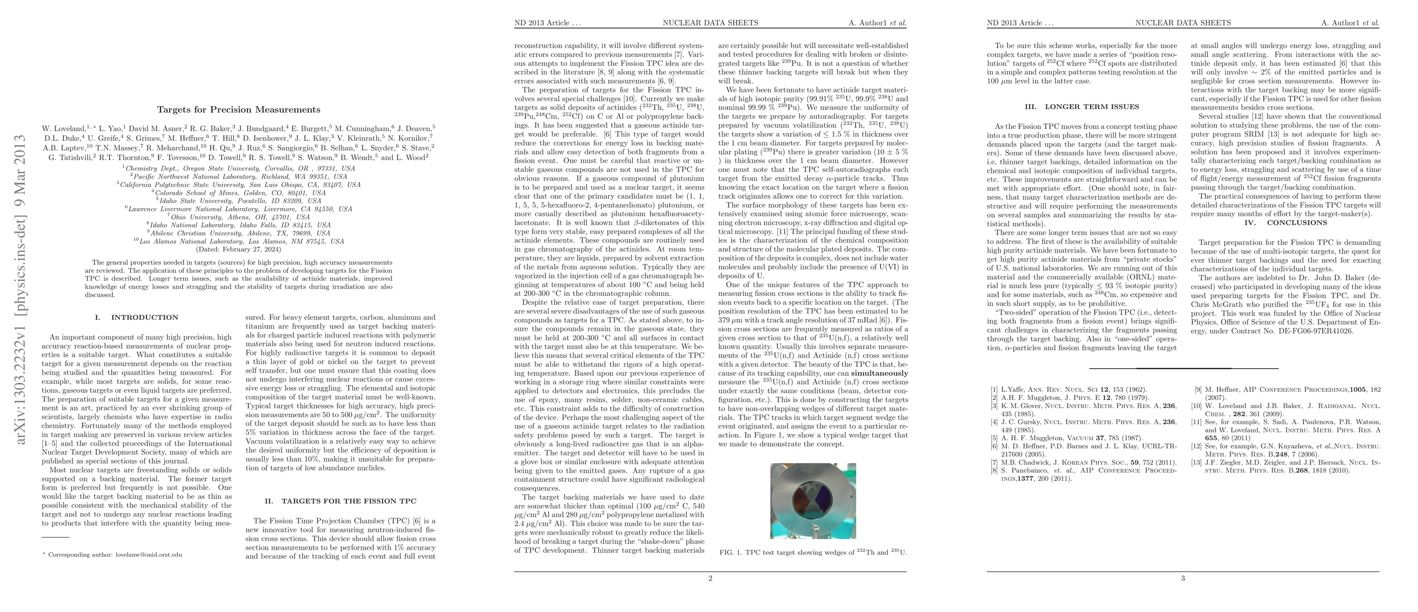 Researchers reviewed target properties for high precision measurements, specifically targeting Fission TPC applications. Longer term issues like material availability and stability during irradiation were also discussed.
