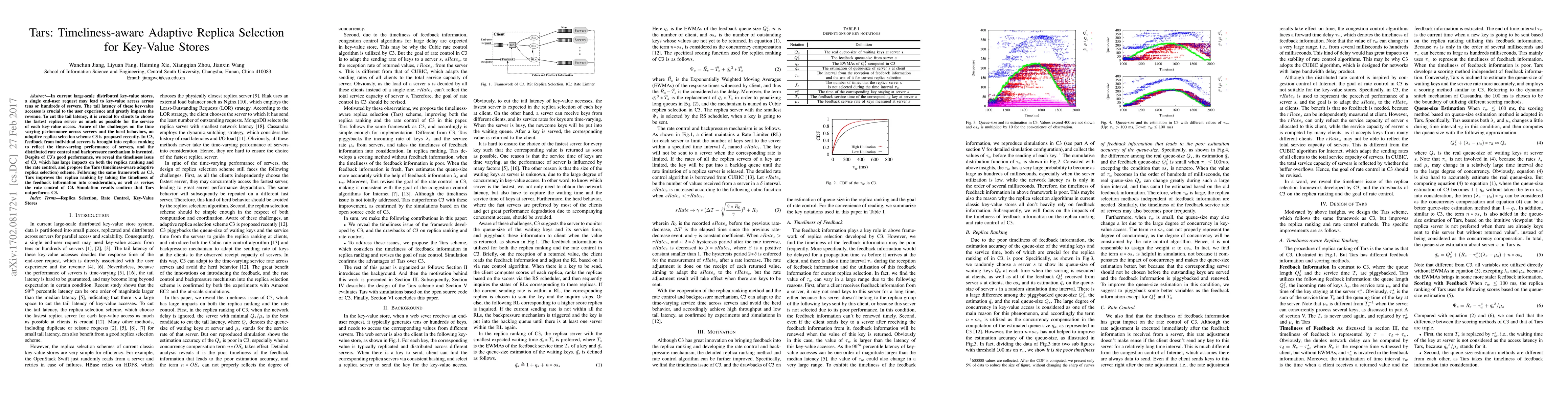 Tars introduces a timeliness-aware adaptive replica selection scheme to improve key-value store performance by considering the freshness of feedback information for replica ranking and revising rate control mechanisms. Simulation results show that Tars outperforms the existing C3 scheme in reducing tail latency.