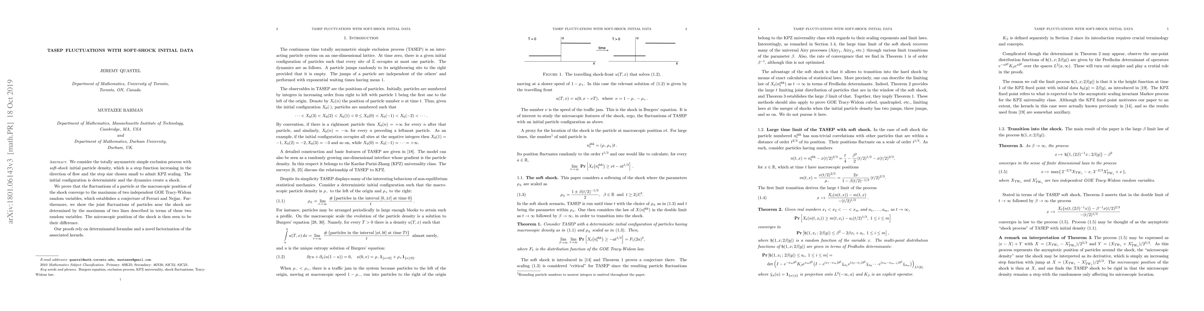 This paper studies fluctuations in the totally asymmetric simple exclusion process (TASEP) with soft-shock initial data, proving that particle fluctuations near the shock converge to the maximum of two independent GOE Tracy-Widom random variables, confirming a conjecture by Ferrari and Nejjar. The joint fluctuations are described by the maximum of two lines linked to these random variables, with the shock's microscopic position determined by their difference.