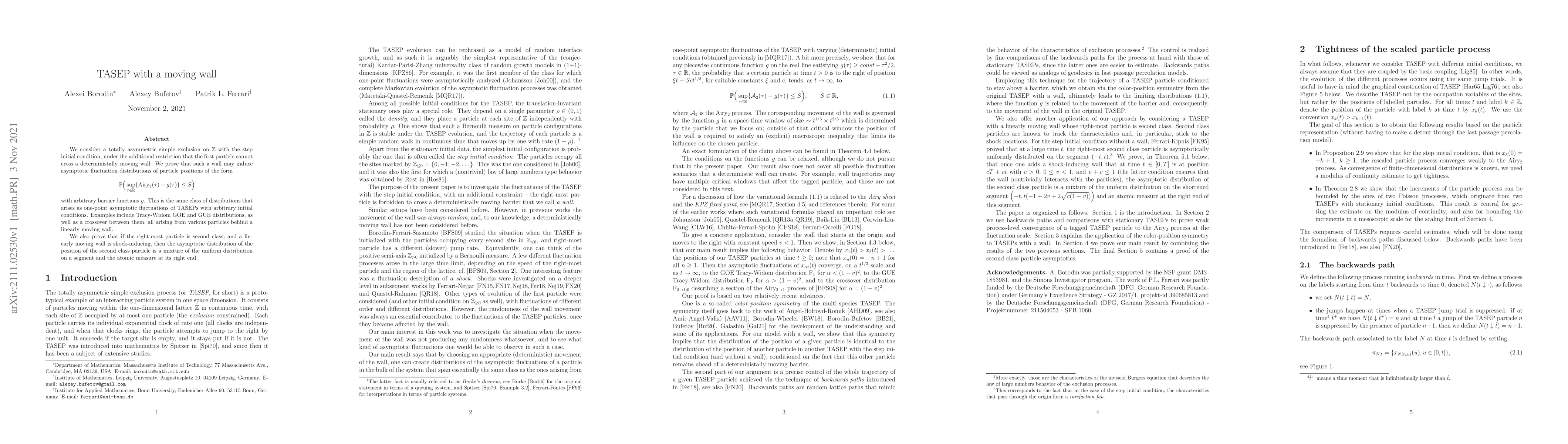 We consider a totally asymmetric simple exclusion on $\mathbb{Z}$ with the step initial condition, under the additional restriction that the first particle cannot cross a deterministally moving wall. We prove that such a wall may induce asymptotic fluctuation distributions of particle positions of the form $$ \mathbb{P}\Big(\sup_{\tau\in \mathbb{R}}\{\textrm{Airy}_2(\tau) -g(\tau)\}\leq S\Big)$$ with arbitrary barrier functions $g$. This is the same class of distributions that arises as one-point asymptotic fluctuations of TASEPs with arbitrary initial conditions. Examples include Tracy-Widom GOE and GUE distributions, as well as a crossover between them, all arising from various particles behind a linearly moving wall. We also prove that if the right-most particle is second class, and a linearly moving wall is shock-inducing, then the asymptotic distribution of the position of the second class particle is a mixture of the uniform distribution on a segment and the atomic measure at its right end.