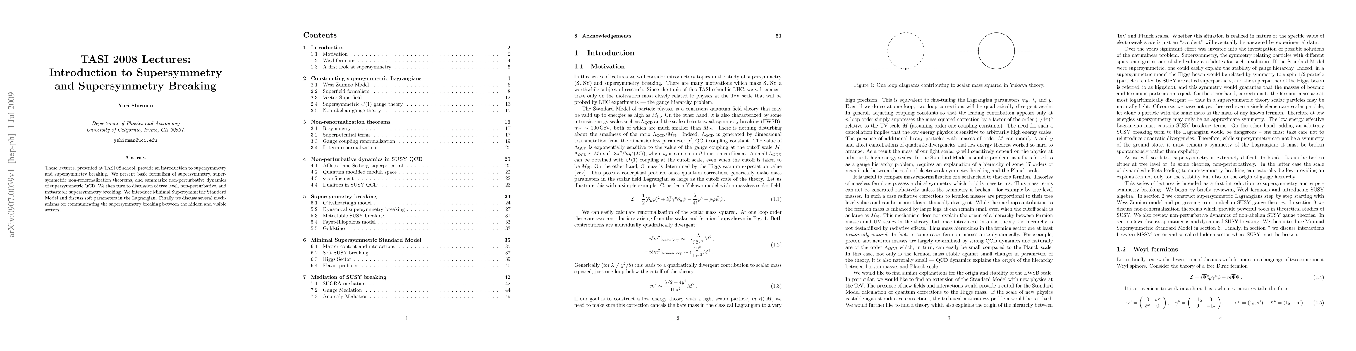 These lectures introduce supersymmetry basics, covering formalism, theorems, and dynamics, before discussing various supersymmetry breaking mechanisms, including Minimal Supersymmetric Standard Model parameters and methods for transmitting breaking signals.