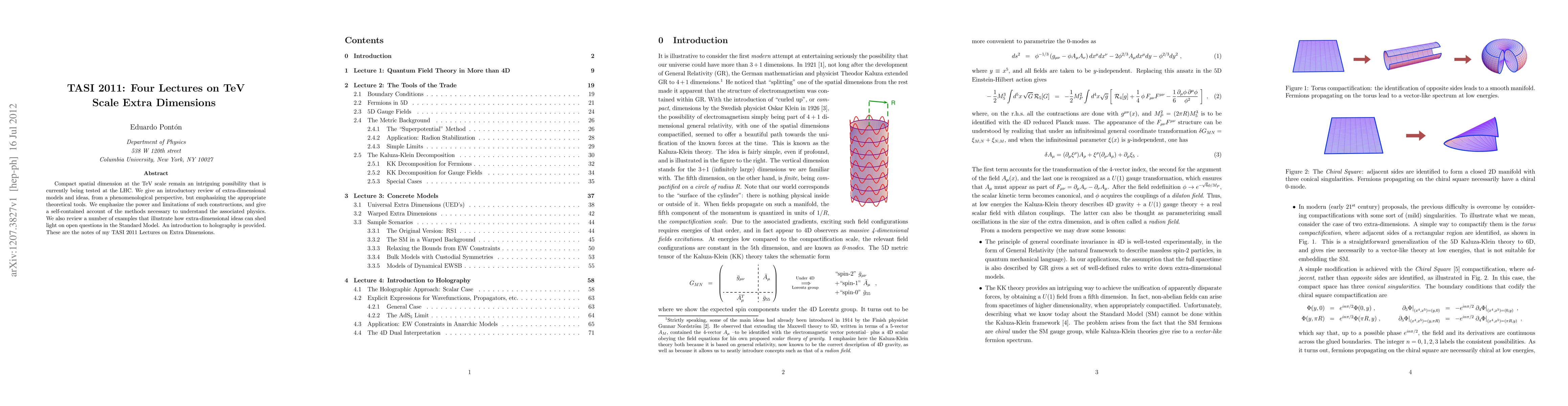 Compact spatial dimension at the TeV scale remain an intriguing possibility that is currently being tested at the LHC. We give an introductory review of extra-dimensional models and ideas, from a phenomenological perspective, but emphasizing the appropriate theoretical tools. We emphasize the power and limitations of such constructions, and give a self-contained account of the methods necessary to understand the associated physics. We also review a number of examples that illustrate how extra-dimensional ideas can shed light on open questions in the Standard Model. An introduction to holography is provided. These are the notes of my TASI 2011 Lectures on Extra Dimensions.