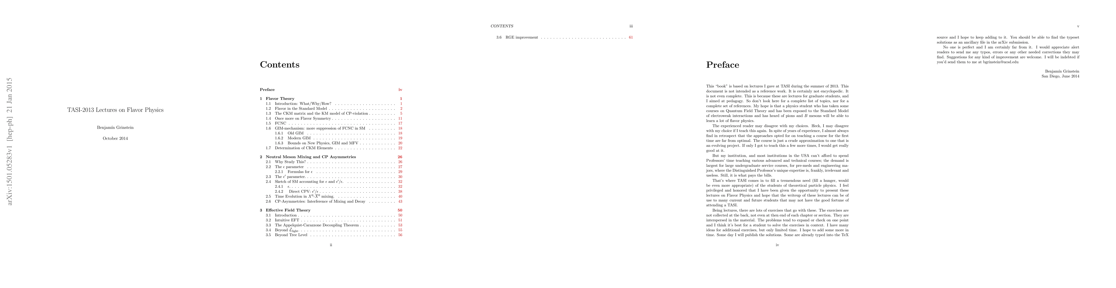 This paper covers various topics in flavor physics, including the Standard Model's quark sector, the CKM matrix, FCNCs, and effective field theory, with a focus on minimal flavor violation and CP asymmetries.