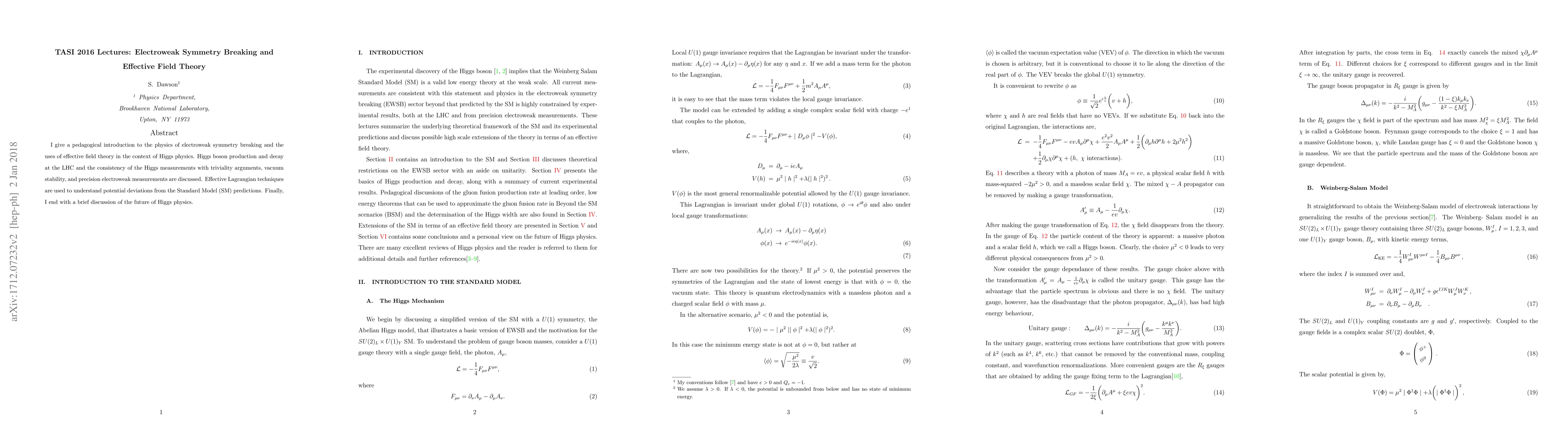 Summary: This paper provides a comprehensive overview of electroweak symmetry breaking and effective field theory applied to Higgs physics, discussing LHC measurements, potential deviations from Standard Model predictions, and future research directions in Higgs studies.