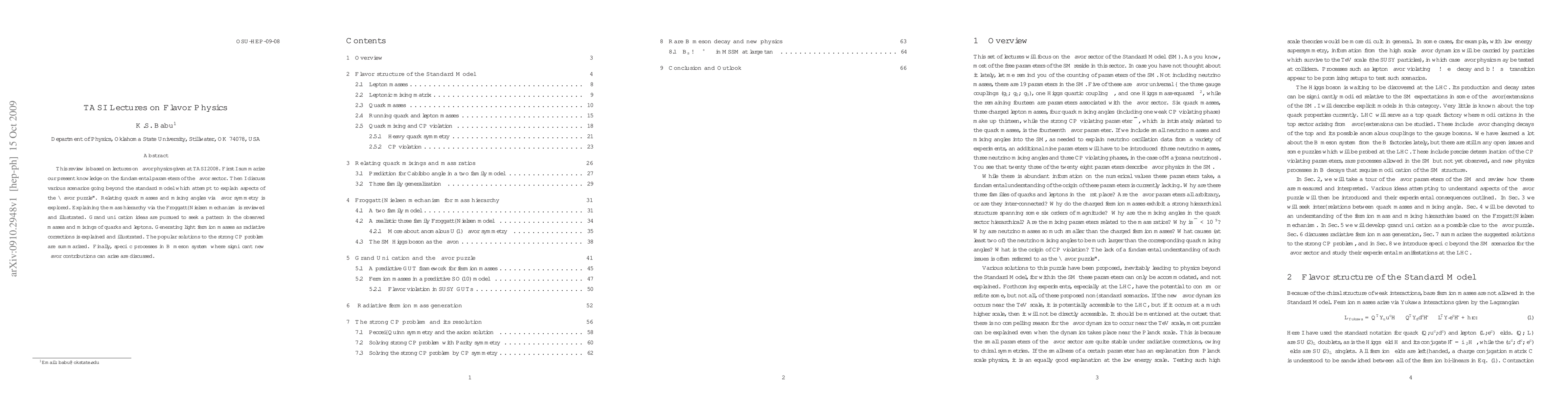 This TASI lecture review covers fundamental parameters in flavor physics, explores beyond-standard-model scenarios to explain the "flavor puzzle," and delves into generating light fermion masses and solutions to the strong CP problem, concluding with new flavor contributions in B meson systems.