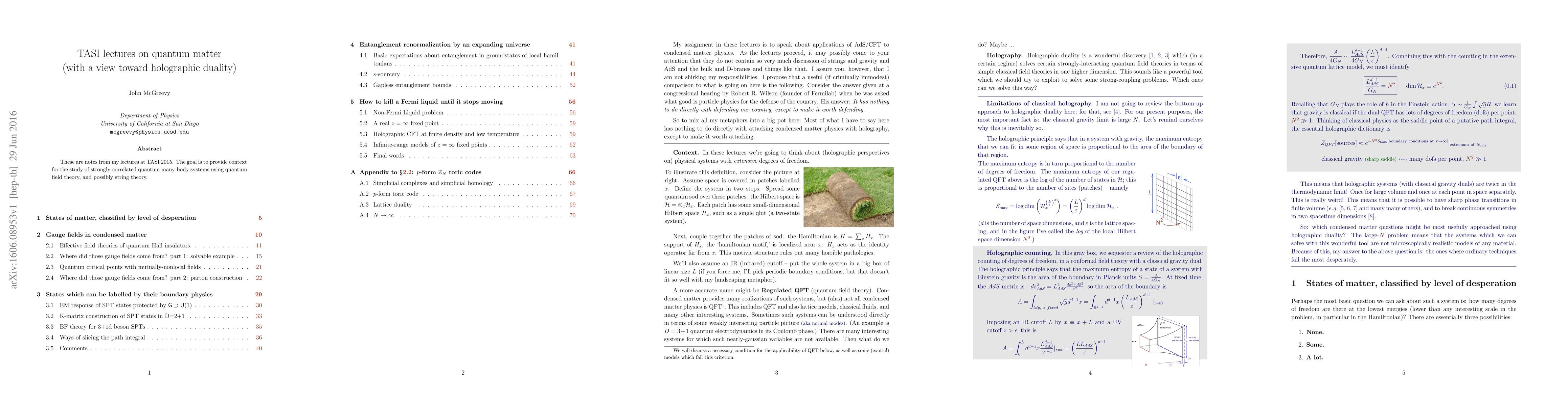 These are notes from my lectures at TASI 2015. The goal is to provide context for the study of strongly-correlated quantum many-body systems using quantum field theory, and possibly string theory.