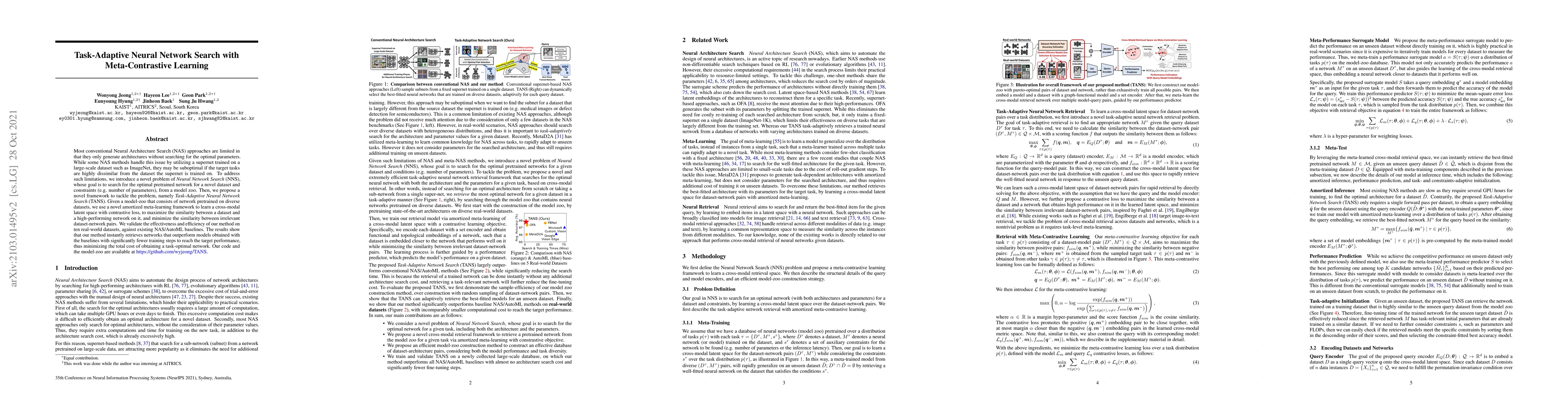 This research introduces Task-Adaptive Neural Network Search (TANS), a novel framework for finding optimal pretrained networks from a model zoo for specific tasks, addressing limitations of conventional Neural Architecture Search methods. TANS uses a meta-learning approach with contrastive loss to efficiently retrieve high-performing networks with fewer training steps, demonstrating effectiveness on diverse real-world datasets.