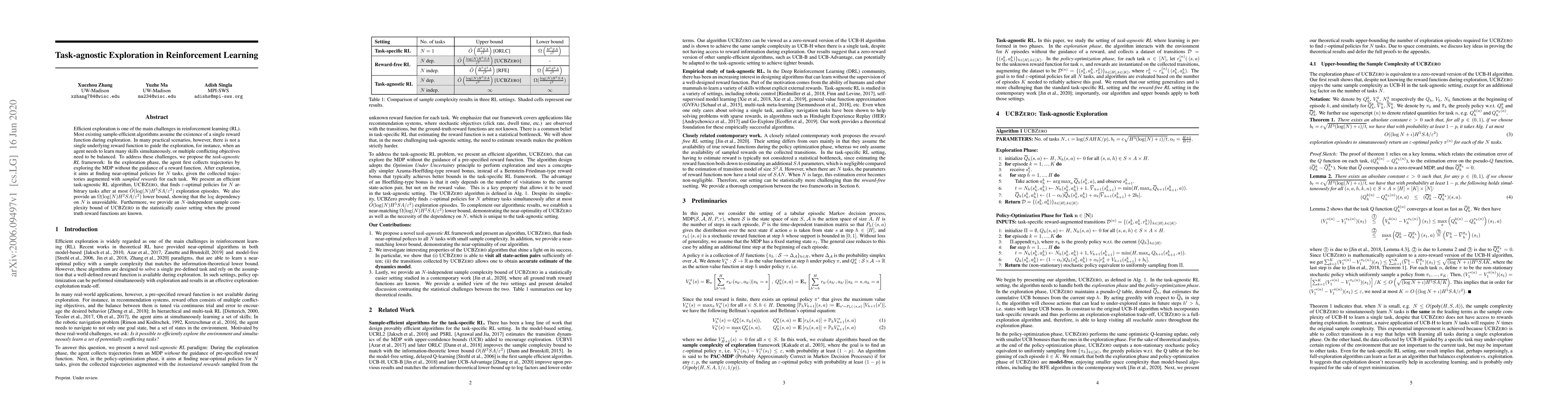 This paper proposes a task-agnostic reinforcement learning framework to address exploration challenges when multiple, potentially conflicting objectives are present. The introduced algorithm, \textsc{UCBZero}, efficiently finds near-optimal policies for multiple tasks using collected trajectories without initial reward guidance, achieving a sample complexity bound with logarithmic dependency on the number of tasks.