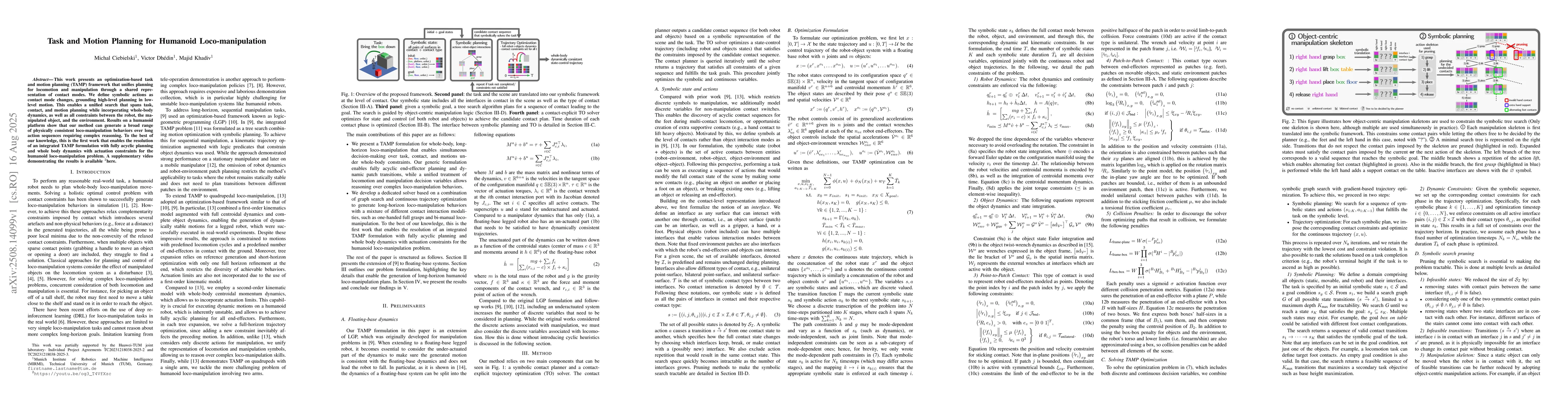 This work presents an optimization-based task and motion planning (TAMP) framework that unifies planning for locomotion and manipulation through a shared representation of contact modes. We define symbolic actions as contact mode changes, grounding high-level planning in low-level motion. This enables a unified search that spans task, contact, and motion planning while incorporating whole-body dynamics, as well as all constraints between the robot, the manipulated object, and the environment. Results on a humanoid platform show that our method can generate a broad range of physically consistent loco-manipulation behaviors over long action sequences requiring complex reasoning. To the best of our knowledge, this is the first work that enables the resolution of an integrated TAMP formulation with fully acyclic planning and whole body dynamics with actuation constraints for the humanoid loco-manipulation problem.