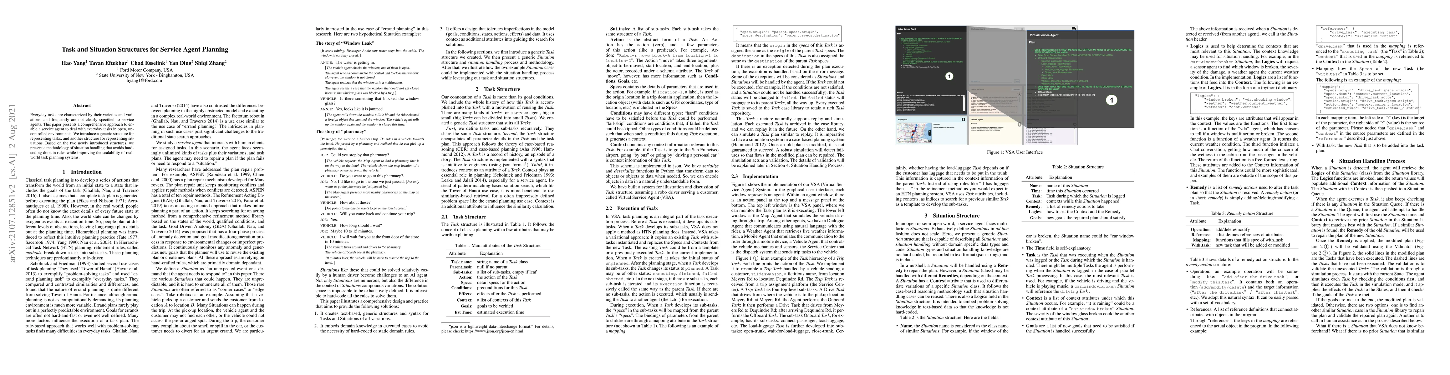 Everyday tasks are characterized by their varieties and variations, and frequently are not clearly specified to service agents. This paper presents a comprehensive approach to enable a service agent to deal with everyday tasks in open, uncontrolled environments. We introduce a generic structure for representing tasks, and another structure for representing situations. Based on the two newly introduced structures, we present a methodology of situation handling that avoids hard-coding domain rules while improving the scalability of real-world task planning systems.