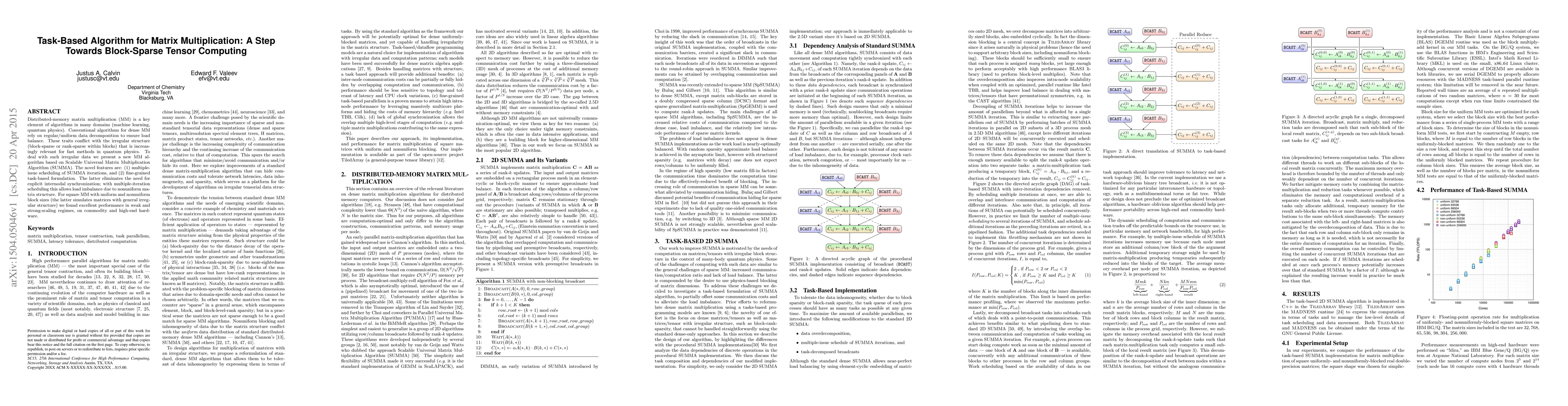 This paper introduces a task-based algorithm for distributed-memory matrix multiplication based on SUMMA, designed to handle irregular block-sparse data structures. It features multiple-issue scheduling and fine-grained task formulation, achieving excellent performance across various hardware and scaling regimes.