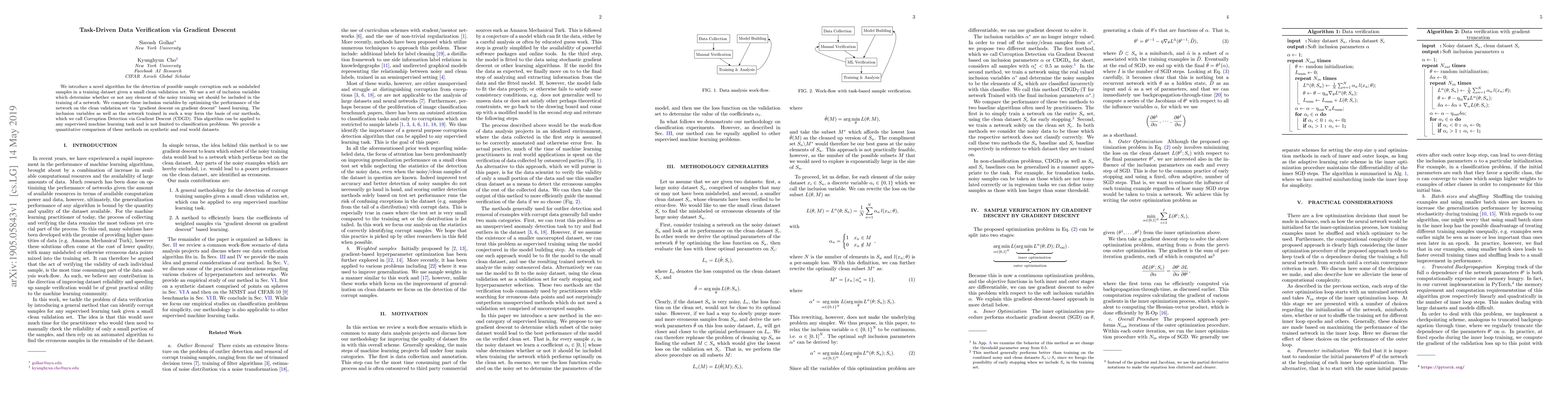 This paper proposes a novel algorithm, Corruption Detection via Gradient Descent (CDGD), to detect sample corruption in training datasets using a small clean validation set. The algorithm optimizes inclusion variables via "gradient descent on gradient descent" to determine which training samples should be included, and it is applicable to any supervised machine learning task.