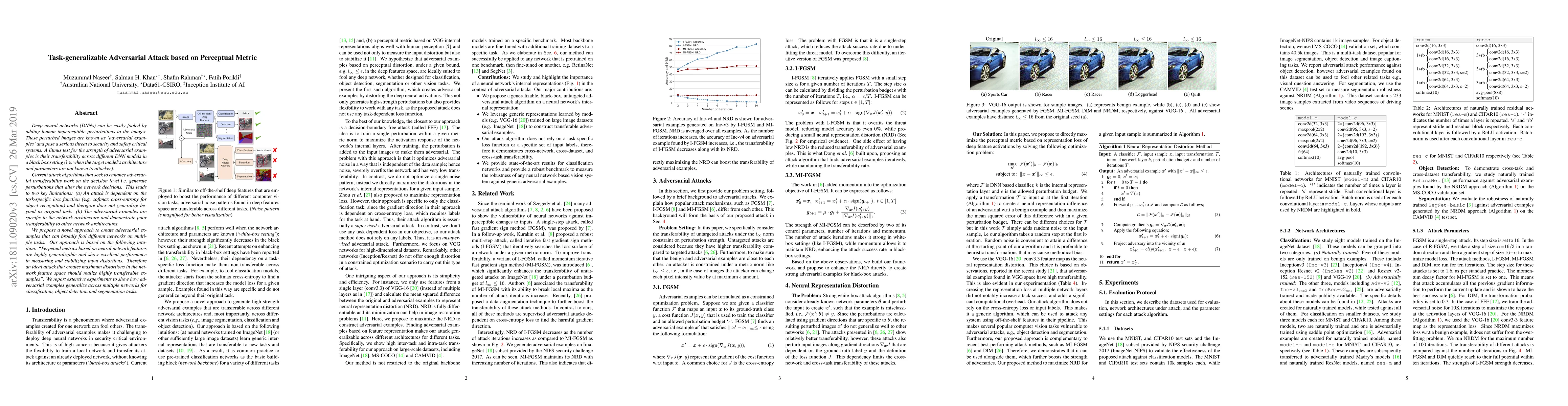 This paper proposes a novel adversarial attack method that leverages perceptual metrics based on neural network features to create transferable adversarial examples across different deep neural networks and tasks, addressing limitations of existing task-specific and architecture-specific attacks. Extensive experiments demonstrate the generalizability of the proposed attack across various tasks.