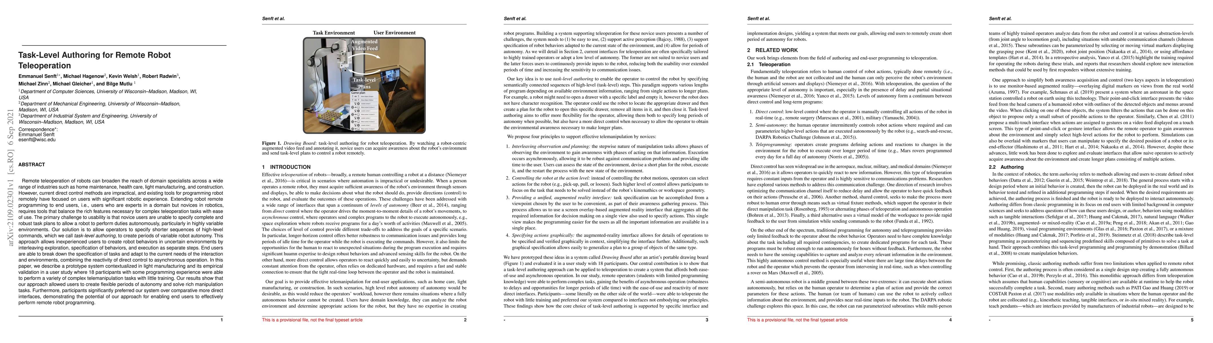 Researchers developed a new approach to remote robot teleoperation that allows users to create flexible periods of autonomy in uncertain environments with minimal training. This method, called task-level authoring, enables end-users to specify shorter sequences of high-level commands, improving usability for novice robotic users.