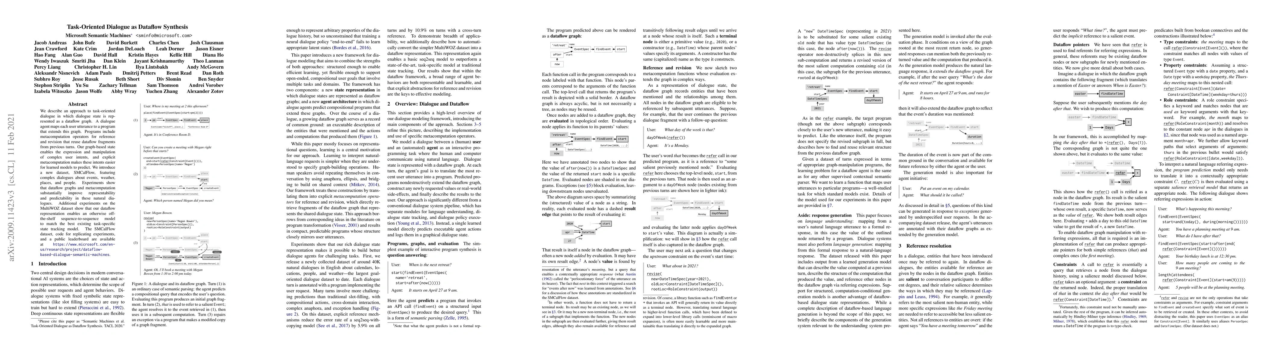 This paper proposes a dataflow graph representation for task-oriented dialogue, enabling complex user intents and improving predictability. Experiments demonstrate significant enhancements in dialogue state tracking using the new SMCalFlow dataset and metacomputation operators.