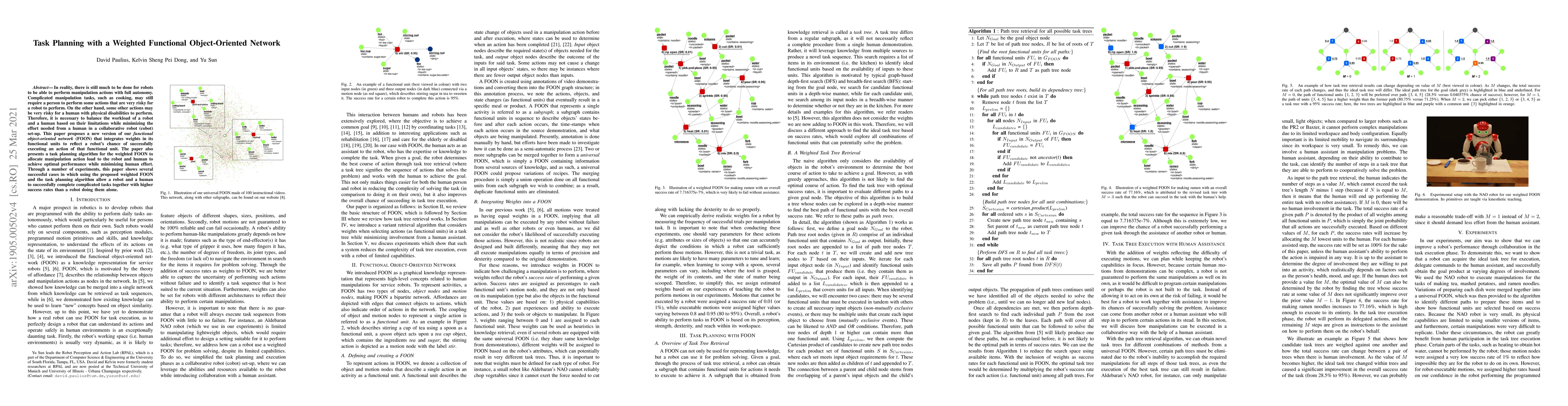 In reality, there is still much to be done for robots to be able to perform manipulation actions with full autonomy. Complicated manipulation tasks, such as cooking, may still require a person to perform some actions that are very risky for a robot to perform. On the other hand, some other actions may be very risky for a human with physical disabilities to perform. Therefore, it is necessary to balance the workload of a robot and a human based on their limitations while minimizing the effort needed from a human in a collaborative robot (cobot) set-up. This paper proposes a new version of our functional object-oriented network (FOON) that integrates weights in its functional units to reflect a robot's chance of successfully executing an action of that functional unit. The paper also presents a task planning algorithm for the weighted FOON to allocate manipulation action load to the robot and human to achieve optimal performance while minimizing human effort. Through a number of experiments, this paper shows several successful cases in which using the proposed weighted FOON and the task planning algorithm allow a robot and a human to successfully complete complicated tasks together with higher success rates than a robot doing them alone.
