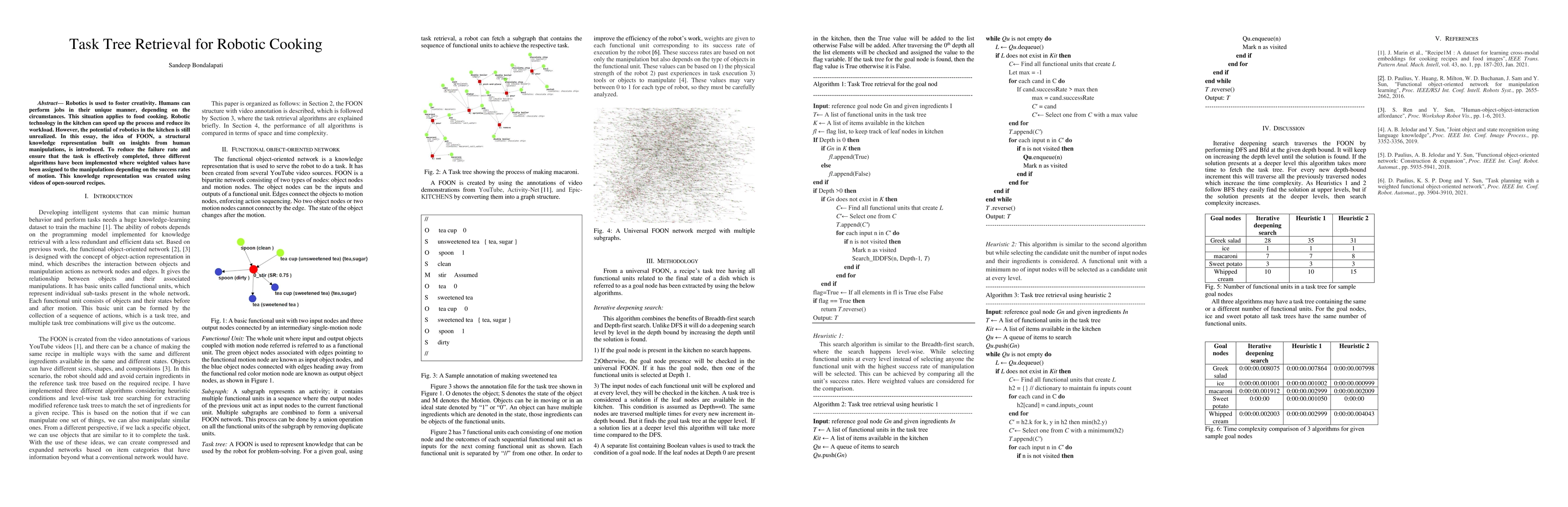 Robotics is used to foster creativity. Humans can perform jobs in their unique manner, depending on the circumstances. This situation applies to food cooking. Robotic technology in the kitchen can speed up the process and reduce its workload. However, the potential of robotics in the kitchen is still unrealized. In this essay, the idea of FOON, a structural knowledge representation built on insights from human manipulations, is introduced. To reduce the failure rate and ensure that the task is effectively completed, three different algorithms have been implemented where weighted values have been assigned to the manipulations depending on the success rates of motion. This knowledge representation was created using videos of open-sourced recipes