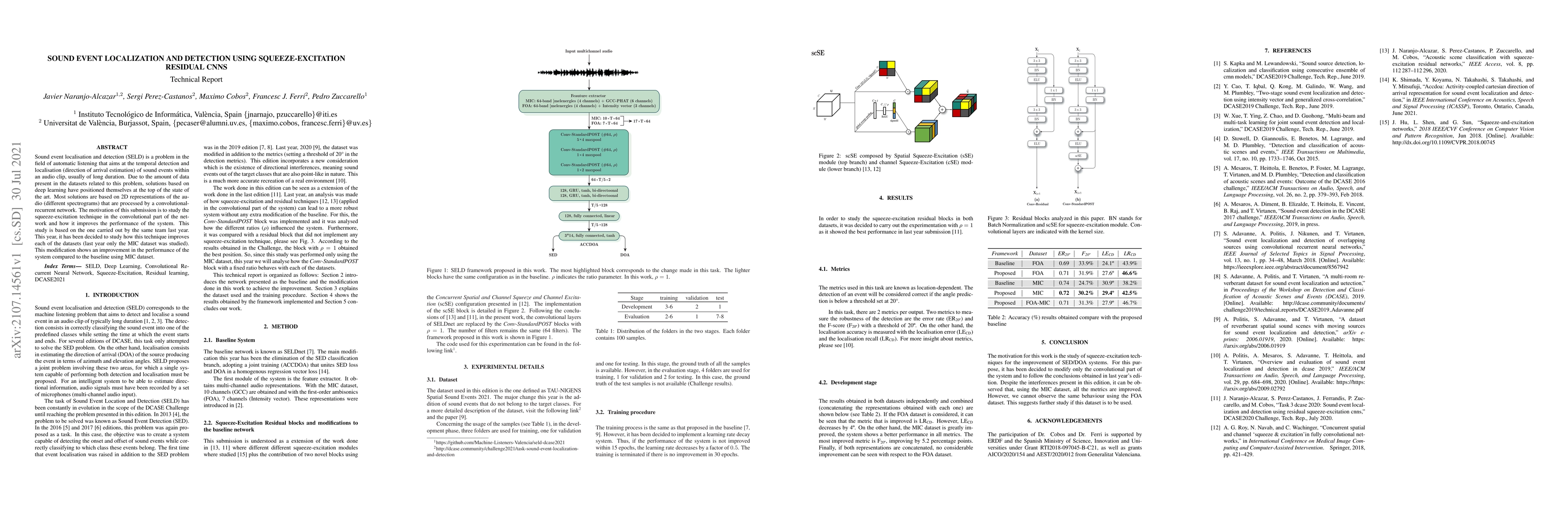 Sound event localisation and detection (SELD) is a problem in the field of automatic listening that aims at the temporal detection and localisation (direction of arrival estimation) of sound events within an audio clip, usually of long duration. Due to the amount of data present in the datasets related to this problem, solutions based on deep learning have positioned themselves at the top of the state of the art. Most solutions are based on 2D representations of the audio (different spectrograms) that are processed by a convolutional-recurrent network. The motivation of this submission is to study the squeeze-excitation technique in the convolutional part of the network and how it improves the performance of the system. This study is based on the one carried out by the same team last year. This year, it has been decided to study how this technique improves each of the datasets (last year only the MIC dataset was studied). This modification shows an improvement in the performance of the system compared to the baseline using MIC dataset.