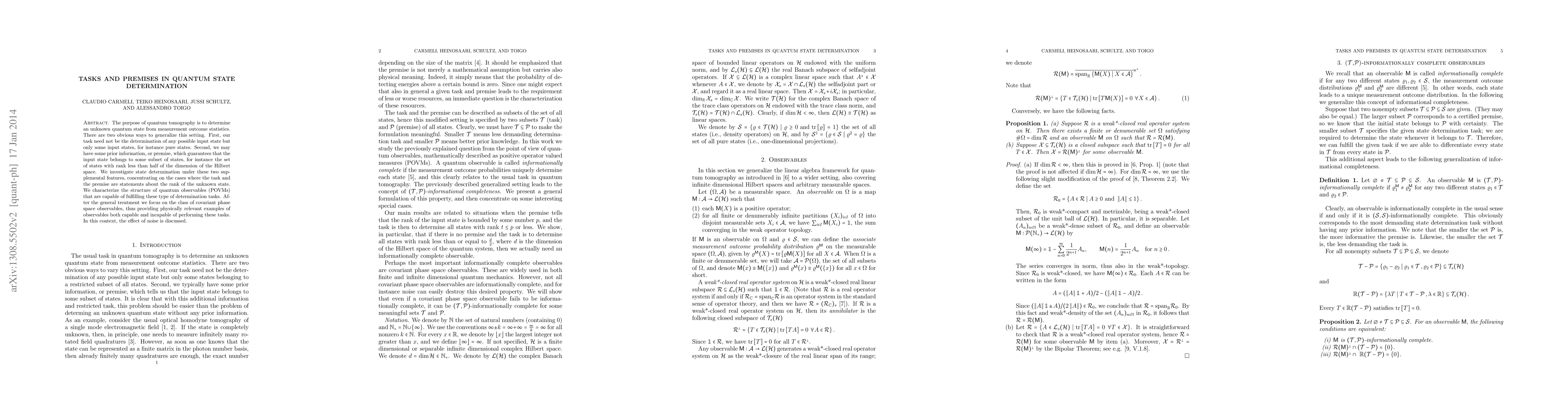 The purpose of quantum tomography is to determine an unknown quantum state from measurement outcome statistics. There are two obvious ways to generalize this setting. First, our task need not be the determination of any possible input state but only some input states, for instance pure states. Second, we may have some prior information, or premise, which guarantees that the input state belongs to some subset of states, for instance the set of states with rank less than half of the dimension of the Hilbert space. We investigate state determination under these two supplemental features, concentrating on the cases where the task and the premise are statements about the rank of the unknown state. We characterize the structure of quantum observables (POVMs) that are capable of fulfilling these type of determination tasks. After the general treatment we focus on the class of covariant phase space observables, thus providing physically relevant examples of observables both capable and incapable of performing these tasks. In this context, the effect of noise is discussed.