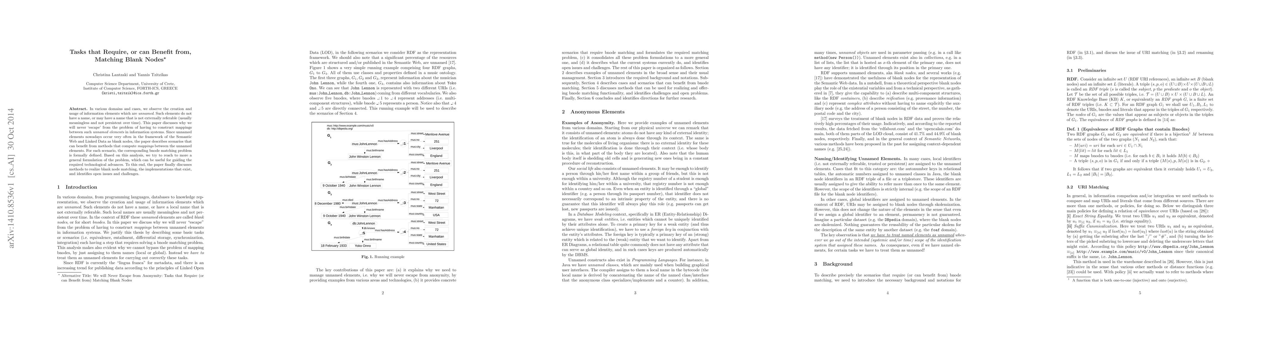 In various domains and cases, we observe the creation and usage of information elements which are unnamed. Such elements do not have a name, or may have a name that is not externally referable (usually meaningless and not persistent over time). This paper discusses why we will never `escape' from the problem of having to construct mappings between such unnamed elements in information systems. Since unnamed elements nowadays occur very often in the framework of the Semantic Web and Linked Data as blank nodes, the paper describes scenarios that can benefit from methods that compute mappings between the unnamed elements. For each scenario, the corresponding bnode matching problem is formally defined. Based on this analysis, we try to reach to more a general formulation of the problem, which can be useful for guiding the required technological advances. To this end, the paper finally discusses methods to realize blank node matching, the implementations that exist, and identifies open issues and challenges.